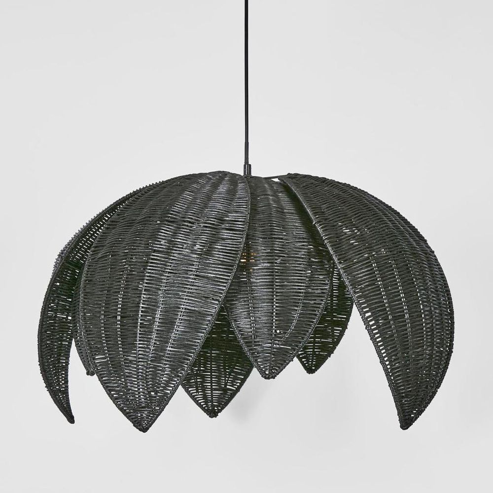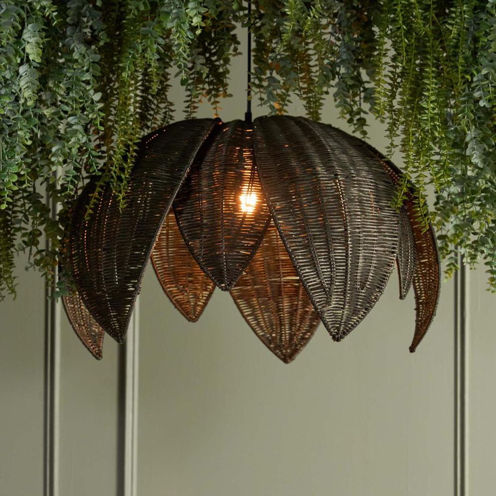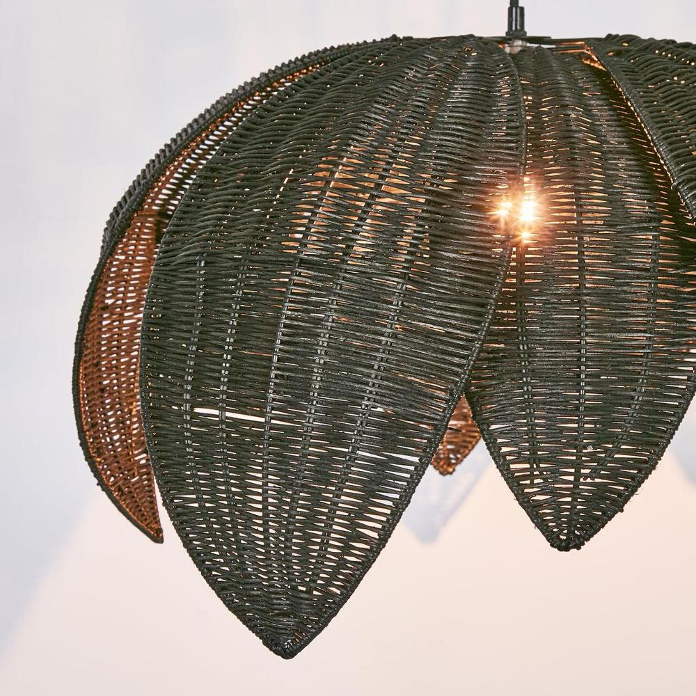 Introducing the Bali Large Pendant in Black Rattan, a captivating lighting fixture that combines unique design, artisanal craftsmanship, and natural materials. This pendant light features a distinctive leaves design and is handwoven from rattan, making it a statement addition to any space. Key Features: Unique Leaves Design: The Bali Large Pendant boasts a striking leaves design that adds a touch of nature-inspired elegance to any room. The intricate pattern creates a mesmerizing play of light and shadow, enhancing the ambiance of your space. Handwoven Rattan: Crafted from high-quality, handwoven rattan, this pendant light showcases the artistry and skill of traditional craftsmanship. The black rattan material adds a contemporary twist, making it a versatile piece that complements various interior styles. Statement Light: Designed to be a focal point, the Bali Large Pendant is perfect for creating a statement in any room. Whether hung in a living room, dining area, bedroom, or entryway, it instantly elevates the décor with its eye-catching design. Elegant Black Finish: The elegant black finish of the rattan adds a modern and sophisticated touch to the pendant. The dark tones create a striking contrast against lighter backgrounds, making it a standout piece in any setting. Versatile Use: Ideal for both residential and commercial spaces, this pendant light can be used in various settings, including living rooms, dining rooms, kitchens, bedrooms, and even outdoor covered areas. Its versatile design makes it suitable for different applications. Easy Installation: The Bali Large Pendant comes with all necessary hardware for easy installation. The adjustable cord allows you to customize the hanging height to suit your space and preferences. Eco-Friendly Material: Made from sustainable rattan, this pendant light is an eco-friendly choice for environmentally conscious consumers. The natural material is not only beautiful but also sustainable, making it a responsible addition to your home. Elevate your interior with the Bali Large Pendant in Black, where unique design meets artisanal craftsmanship. Enjoy a statement piece that brings natural beauty and a sophisticated glow to any space.