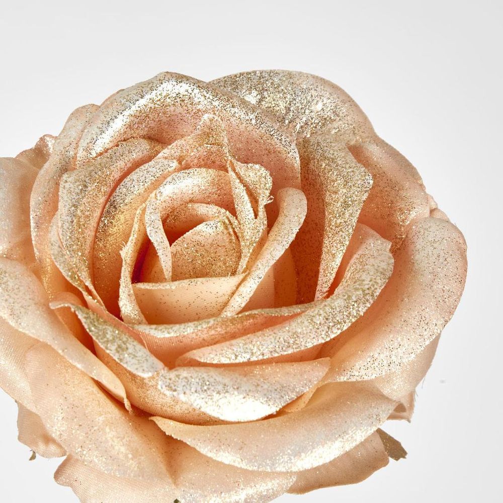 Champagne with Champagne Gold Glitter Christmas Venus Rose with 2 sets of Leaves