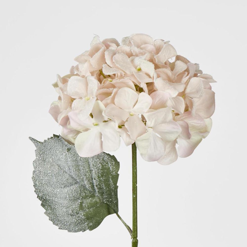 Snow Covered Pink Christmas Hydrangea with 2 Leaves