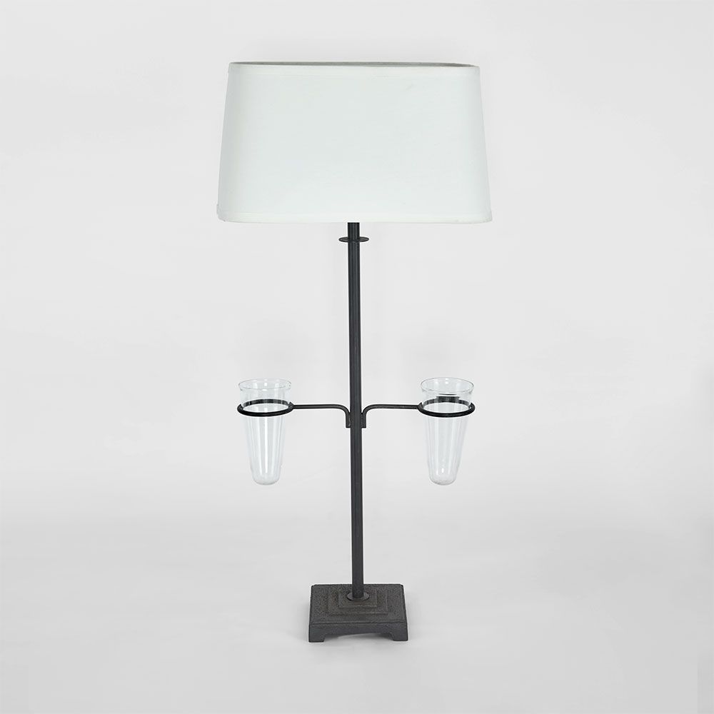 MaterialBase: Metal. Shade: Cotton. Vases: Glass