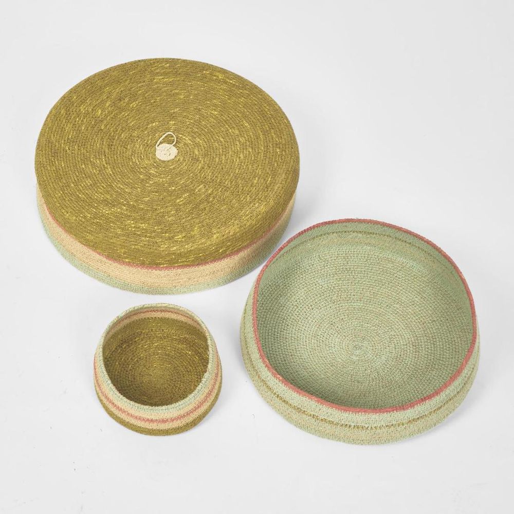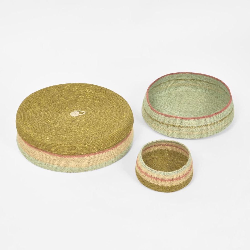 Cina Woven Trays Set 3 Mustard & Blue