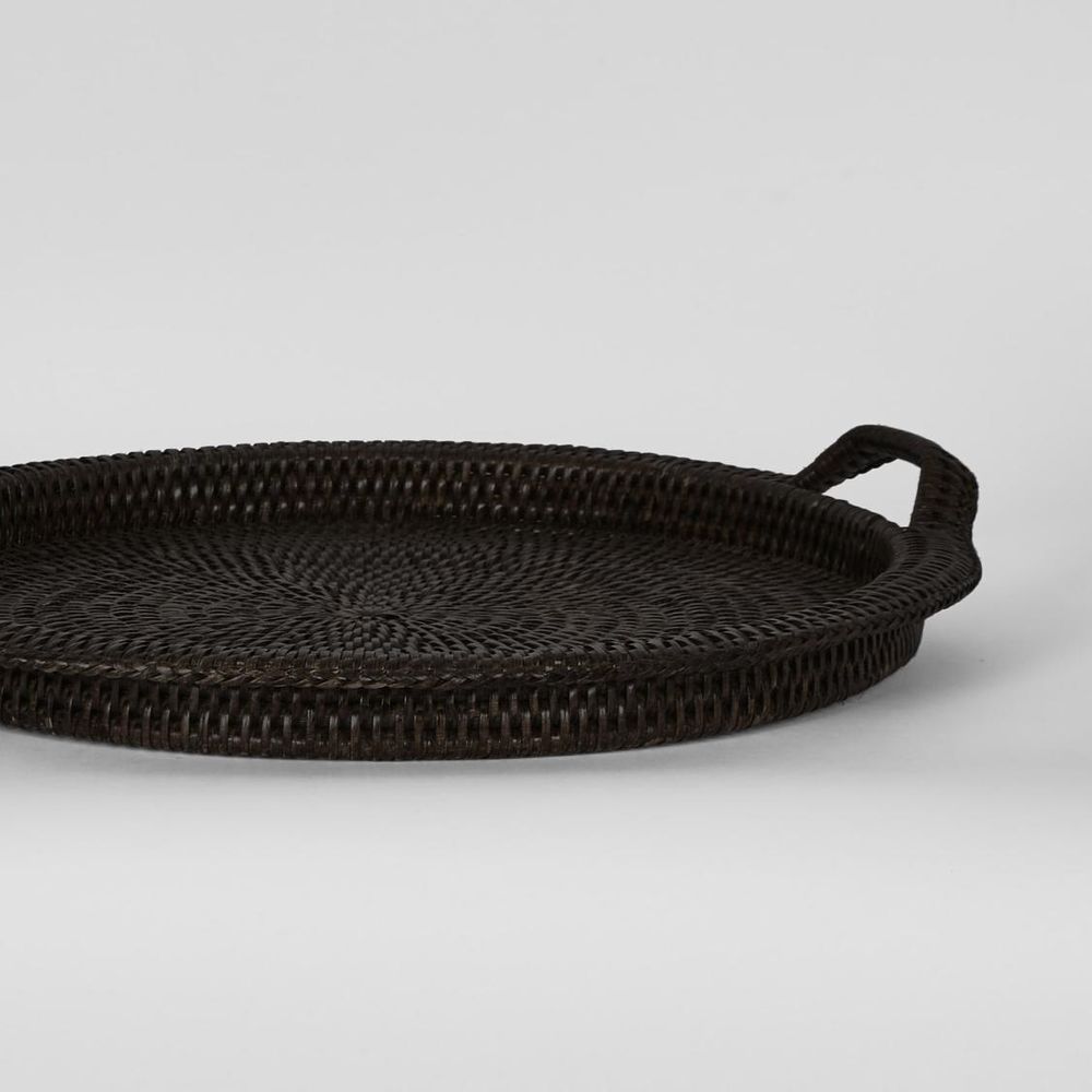 Paume Rattan Round Serving Tray with Handles Black