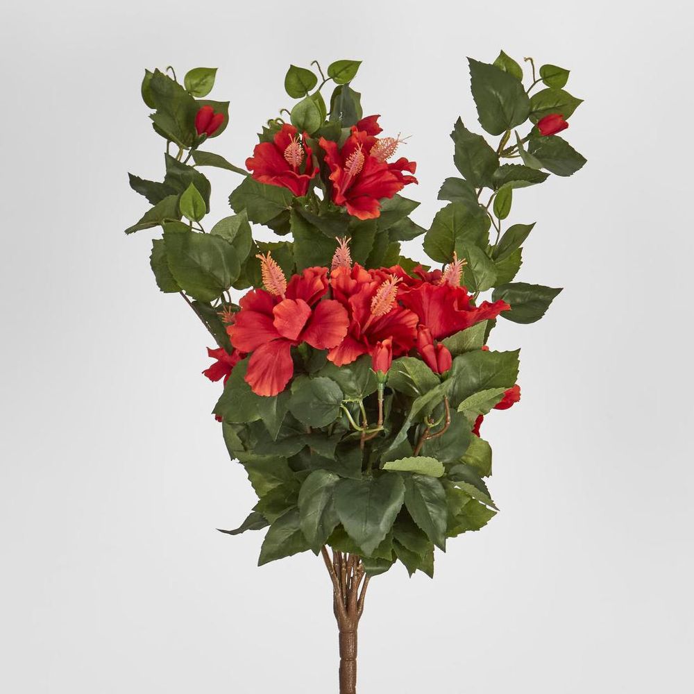 Red Hibiscus Bush with 10 flowers