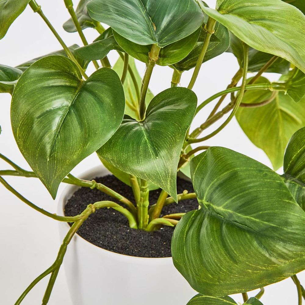 Hanging Philo Leaf Bush in White Pot