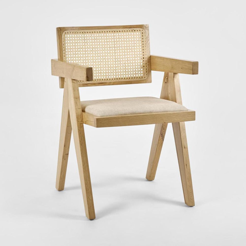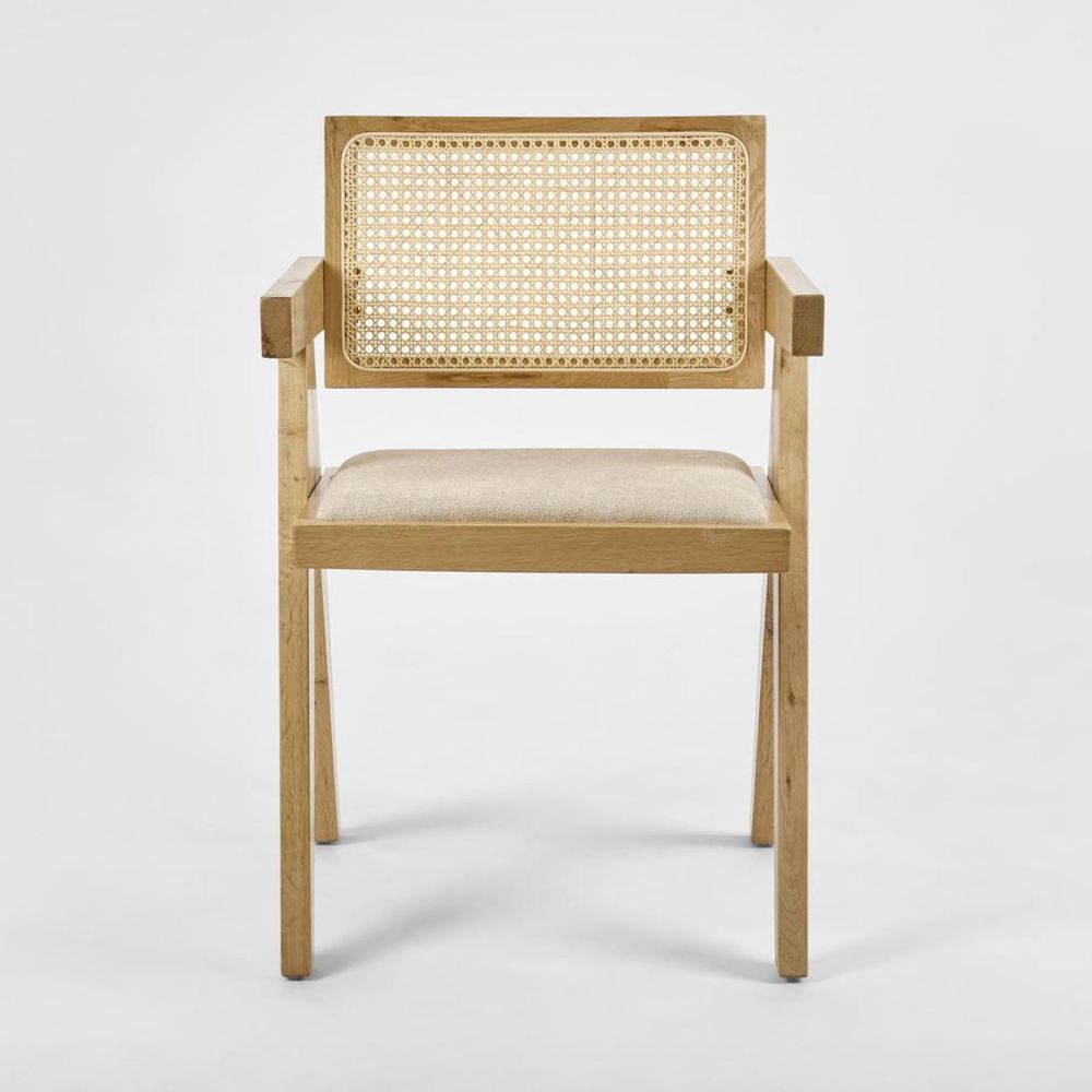 Lexi Scissor Leg Armchair Oak Frame Natural Fabric