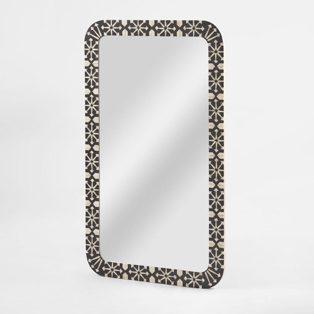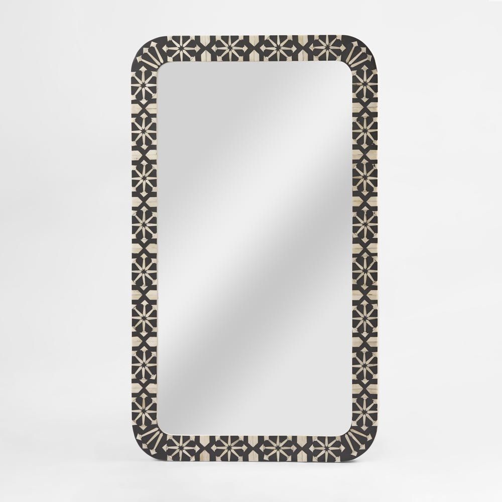 The delightful Adina bone inlay mirrors are the perfect way to make a statement in any inetrior space..The intricately designed pattern encases the mirrored glass to a wonderfuly effect, we're convinced that everything looks better in this mirror! Available in Aqua/White,Peach/White & Grey/White colourways. Handcrafted from ethically sourced buffalo bones in India, each piece is unique. The time-honoured artisinal craft of Bone Inlay was originally created for the royal palaces of Rajasthan, India. With each piece taking months to complete, intricate fragments of buffalo bones are hand-carved and affixed onto the surface in a mosaic-like design. Resin is then used to fill the space around the bone.