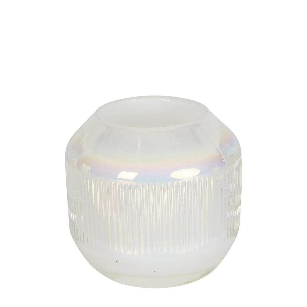 Pearl Stripe Glass Tealight Holder White