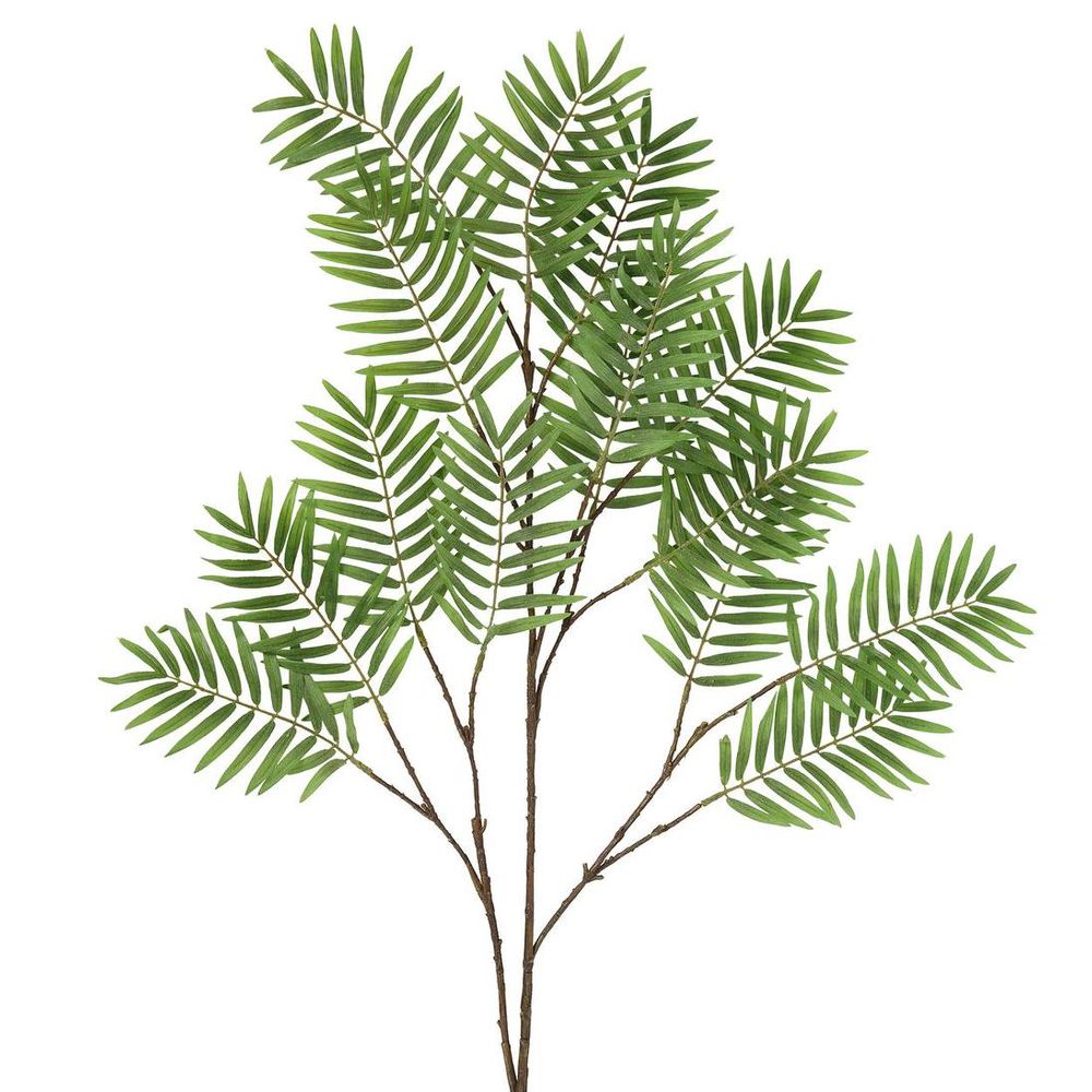 Step into your own slice of paradise with our artificial Chamedorea Leaf Spray in Green, also known as the parlor palm. Its glossy, slender leaves arch gracefully, forming elegant fronds composed of leaflets along a central rib. Perfect for bringing a touch of the tropics indoors, this verdant spray adds vibrancy and sophistication to any space, whether adorning a corner in the living room, accentuating a foyer, or enhancing a botanical display in a conservatory.