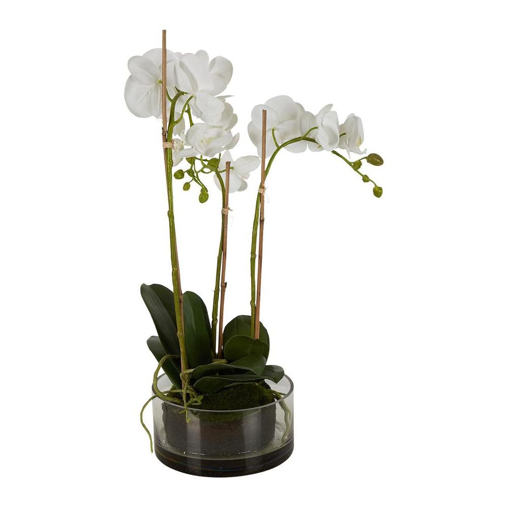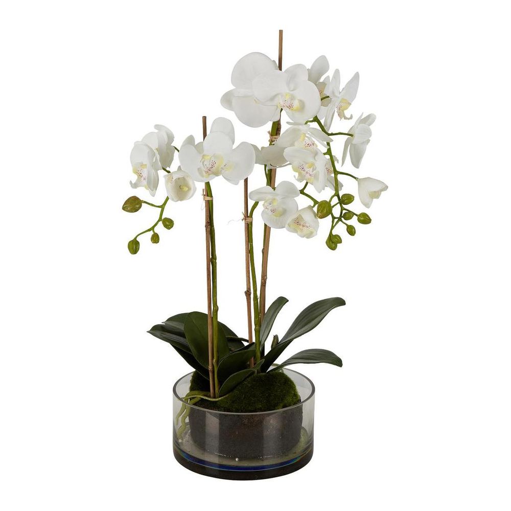 Orchid in Round Glass Vase 60cm White
