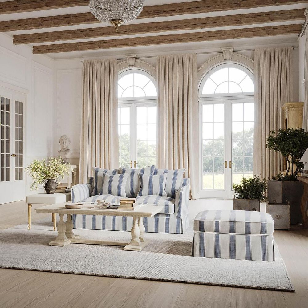 Upgrade your ottoman game with the Ottoman Slip Cover in Noosa Blue Sky Stripe. Designed for the bustling hub of a busy family, its removable covers ensure effortless upkeep, while minimal assembly means more time to kick back and relax. The luxurious fabric and a loose skirt design effortlessly enhance the look and feel of your favorite relaxation spot. Simply pair it with the Noosa Ottoman Base for a touch of elegance and functionality that seamlessly blends into any living space.