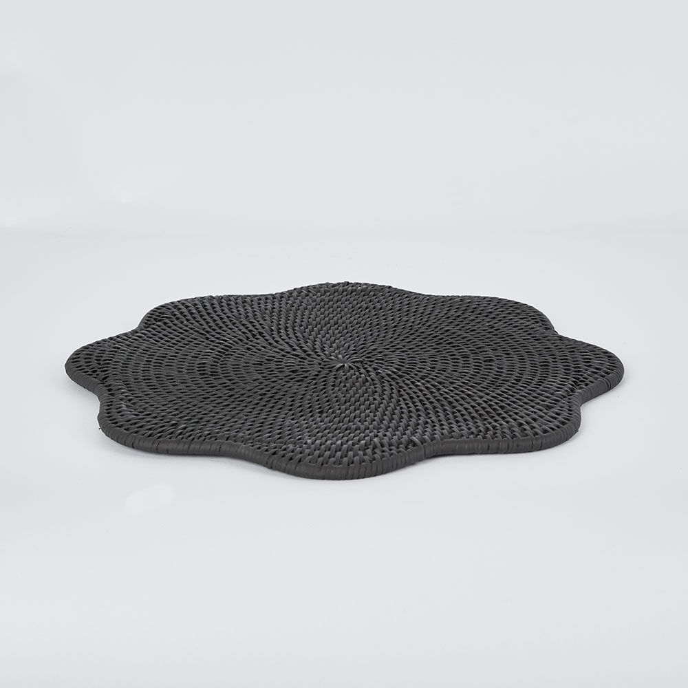 Scallop Rattan Placemat Black