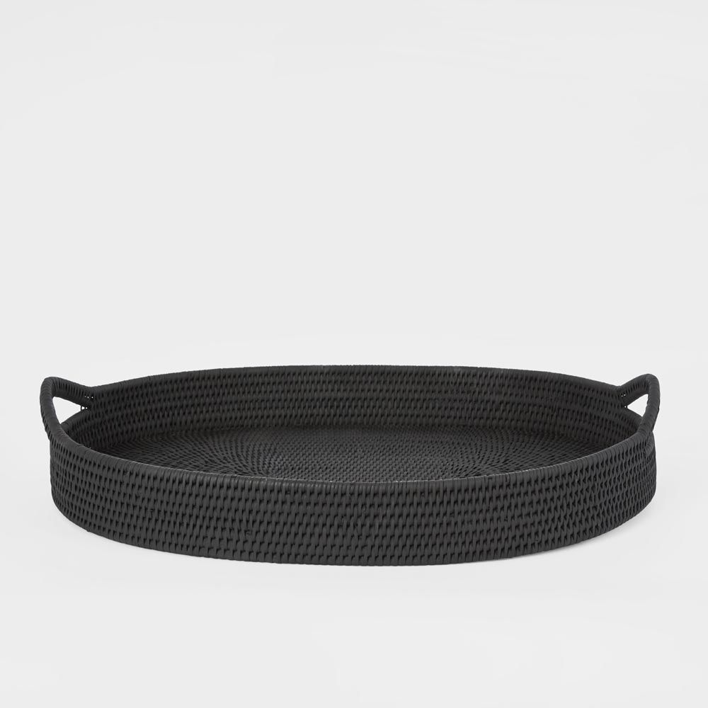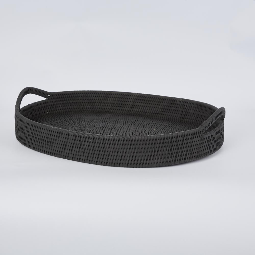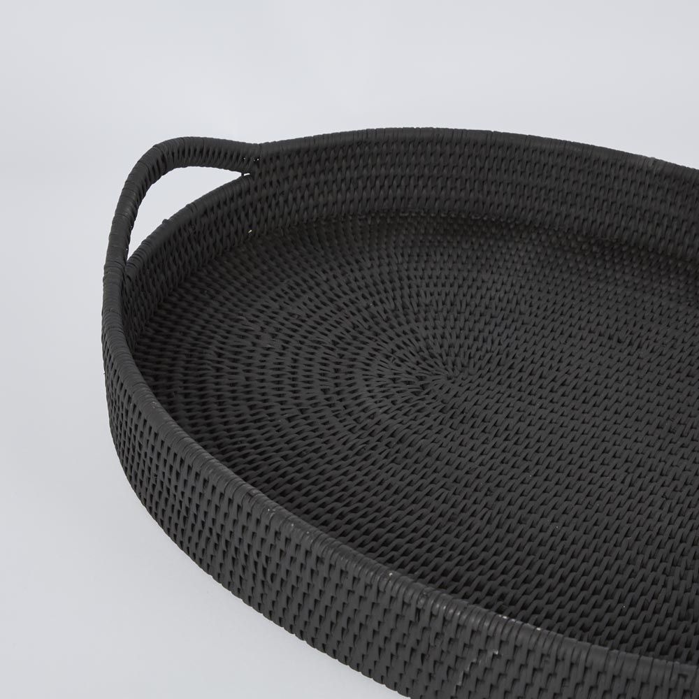 Paume Rattan Oval Serving Tray with Handles Black
