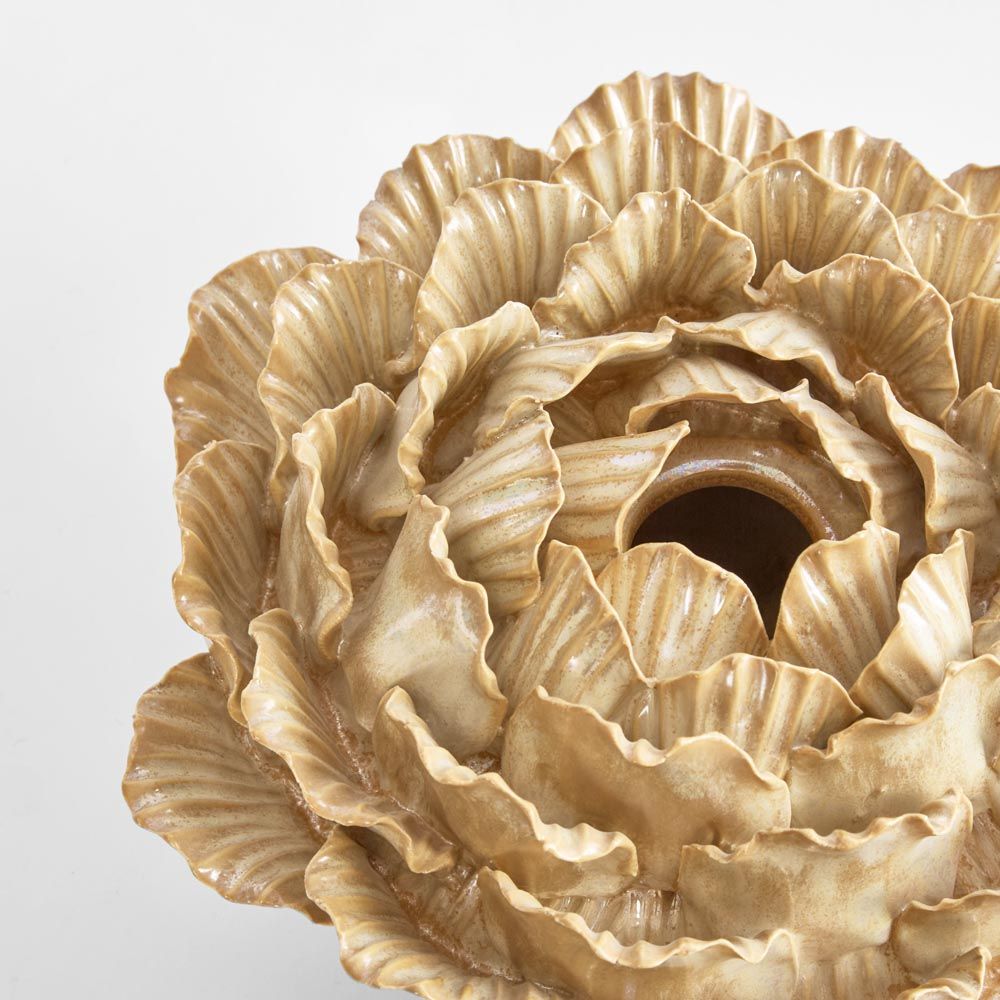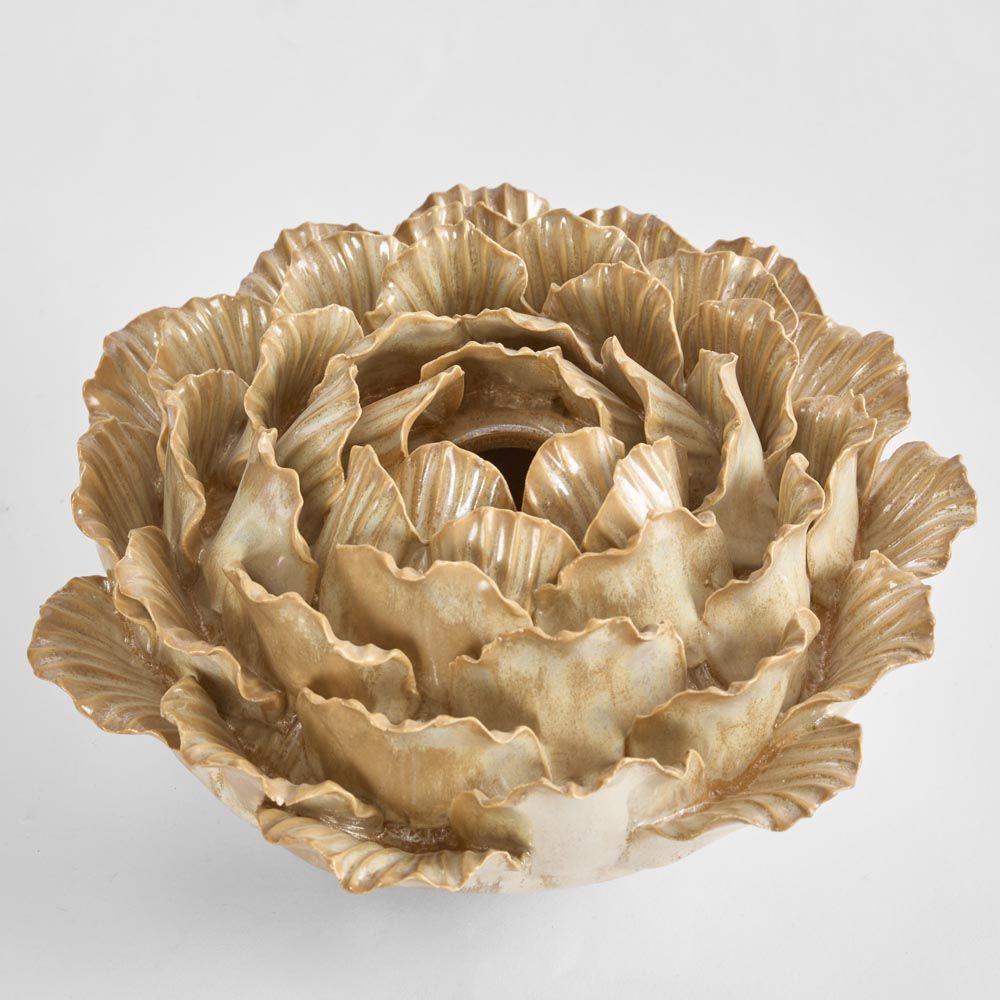 Inspired by nature, the Bloom candle stand is a beautiful work of art, highlighting intricate craftsmanship and design. Handmade and finished with a shiny glaze, each piece will be unique in its finish. We recommend washing with mild soap and warm water. Avoid using harsh abrasives that could scratch the finish. Avoid extreme temperature changes which could lead to cracking.