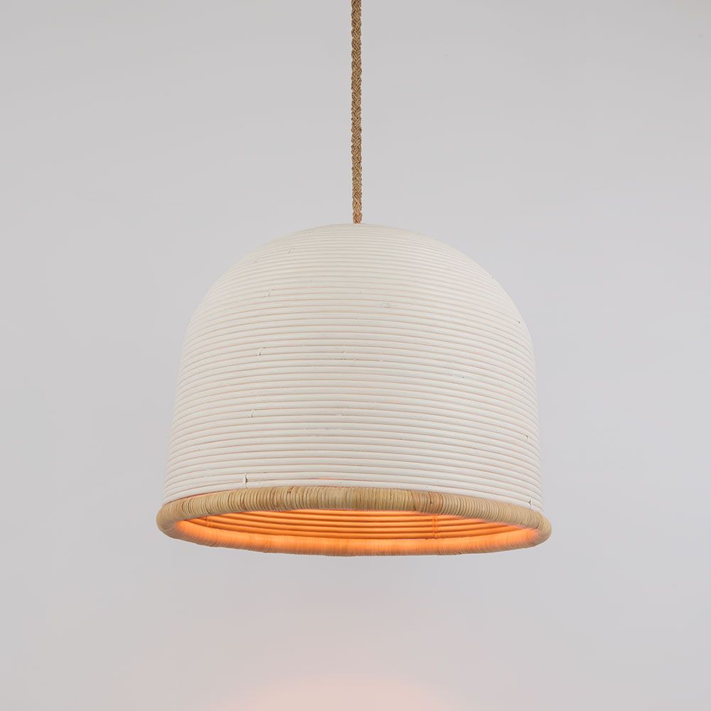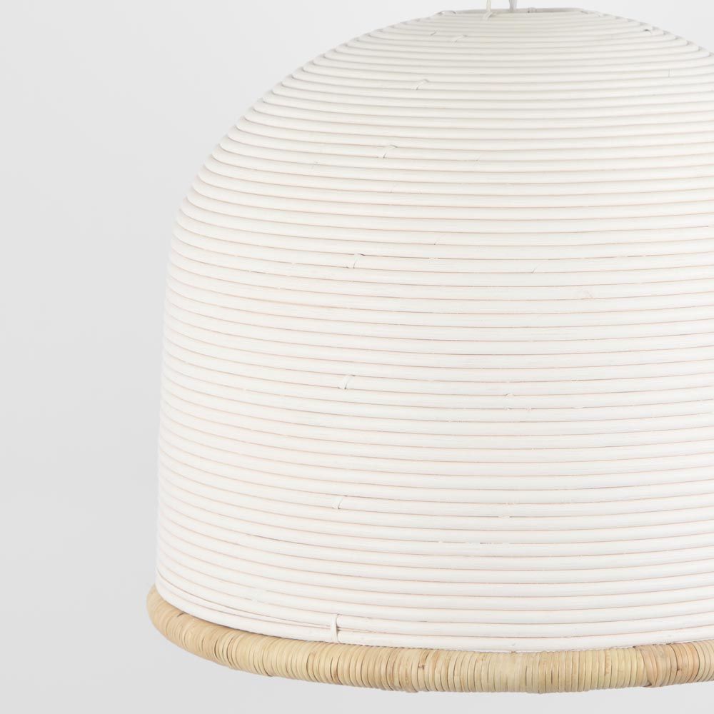 Bell White Pendant Small 60cm crafted from CORE 10-SENDI PEEL-AGEL+IRON-RATTAN, offering a natural, warm ambiance. This piece is ideal for cozy dining spaces or living rooms.
