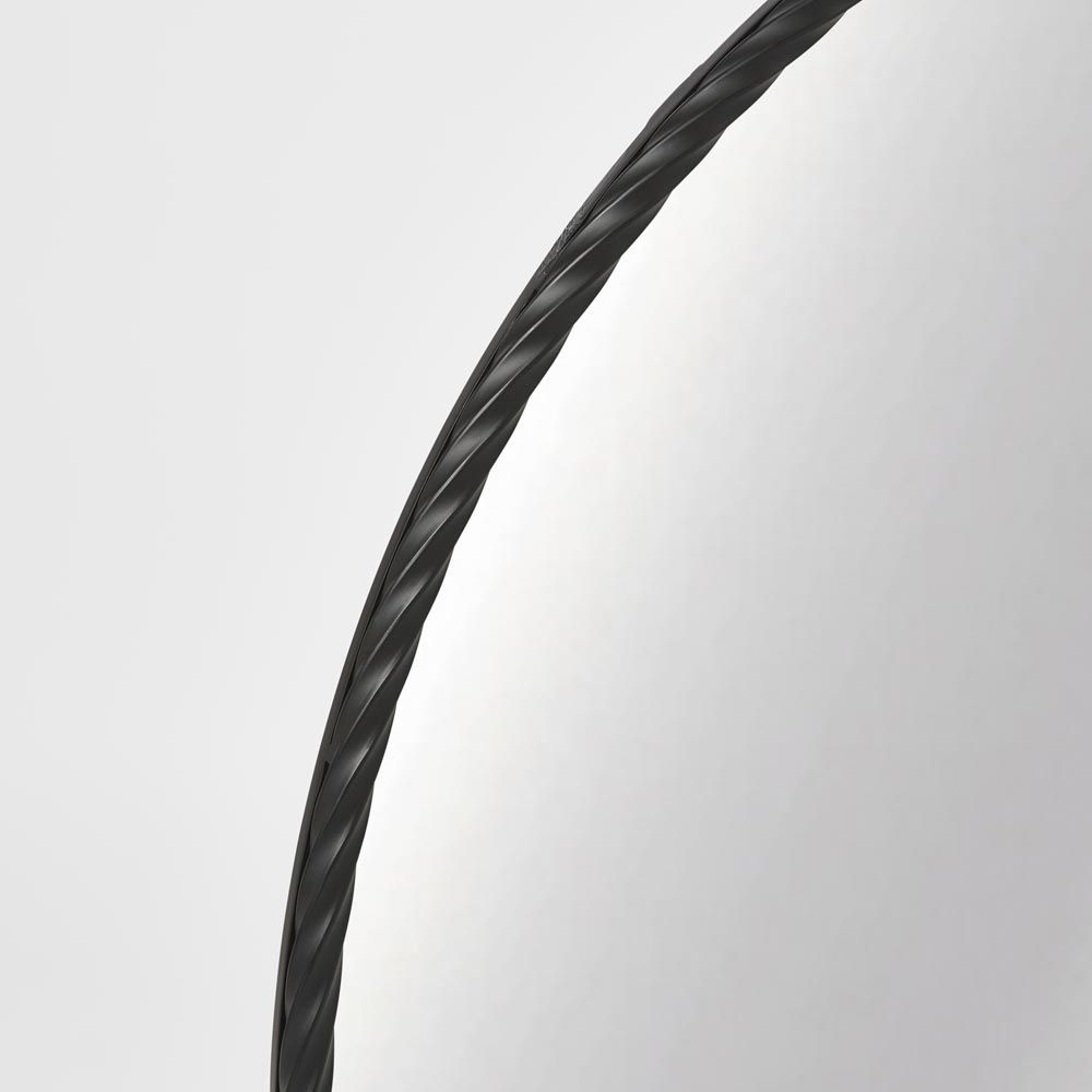 The Palais Round Mirror Large Black is a striking decorative piece often used to enhance interiors. This type of mirror combines a luxurious design with functional elegance, featuring: Shape: A perfectly round mirror for balance and symmetry. Frame: A black rope twist design, adding a bold and textured aesthetic. Size: Large, making it suitable as a statement piece for spaces like living rooms, hallways, or bedrooms.