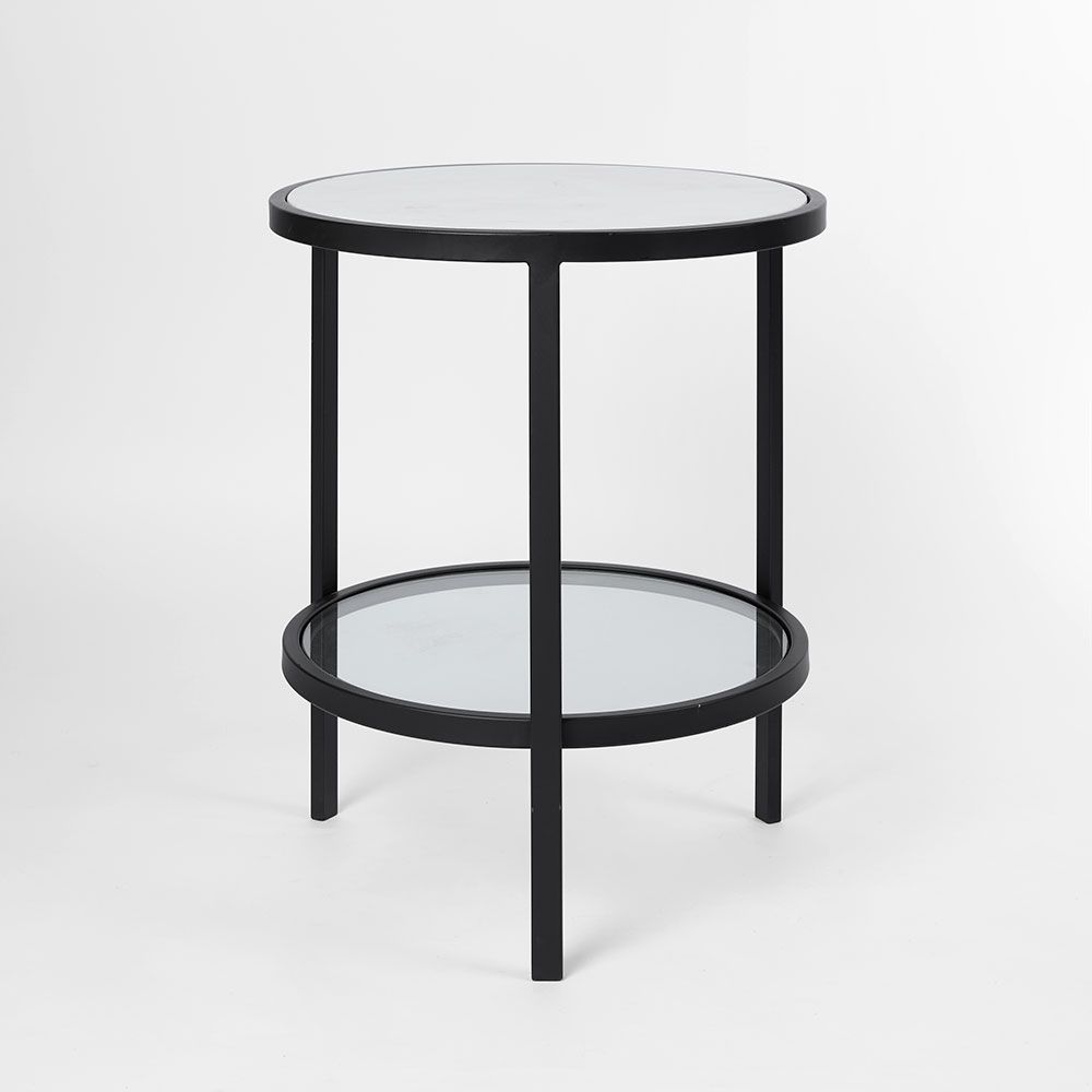 Palladium Black Iron Marble & Glass Side Table