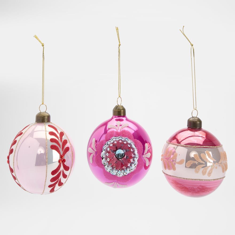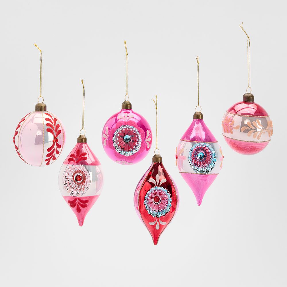 Vintage Guilded Magenta Ornaments - Box Set of 6
