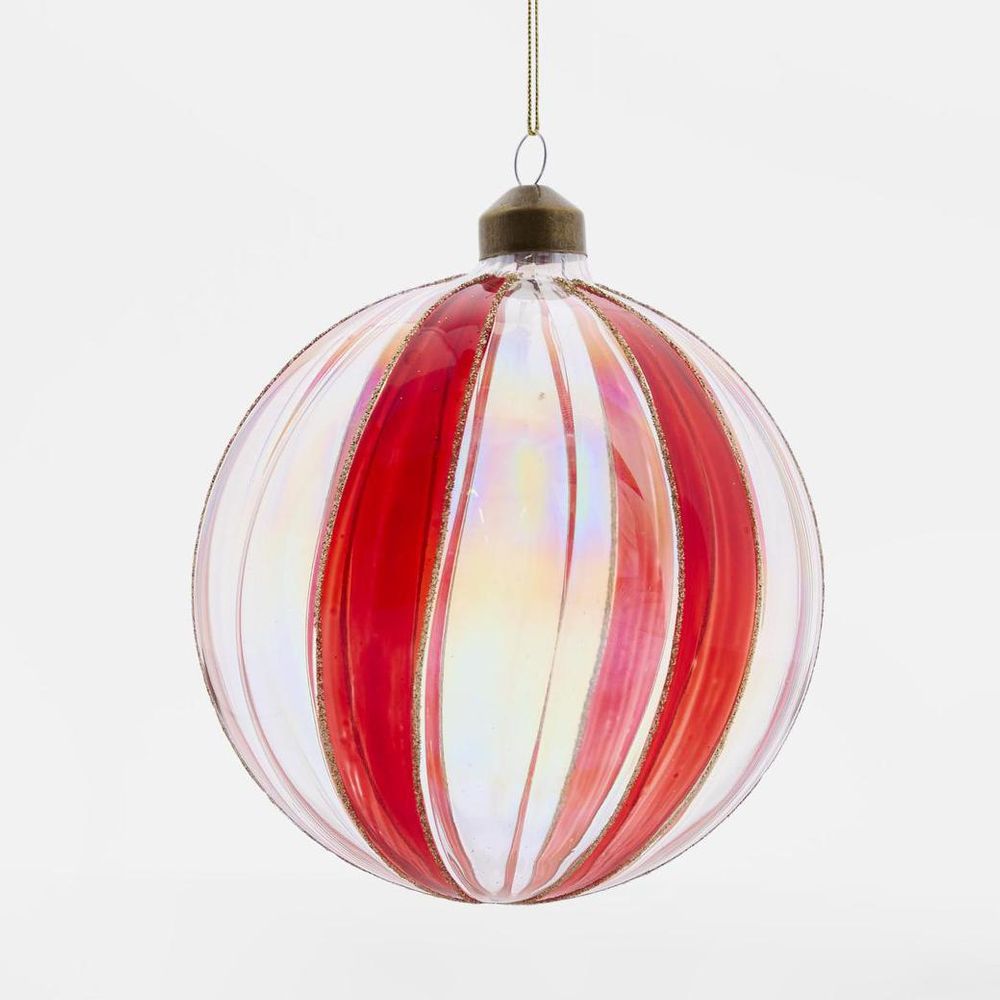 Scarlet Glass Striped Glass Bauble Red