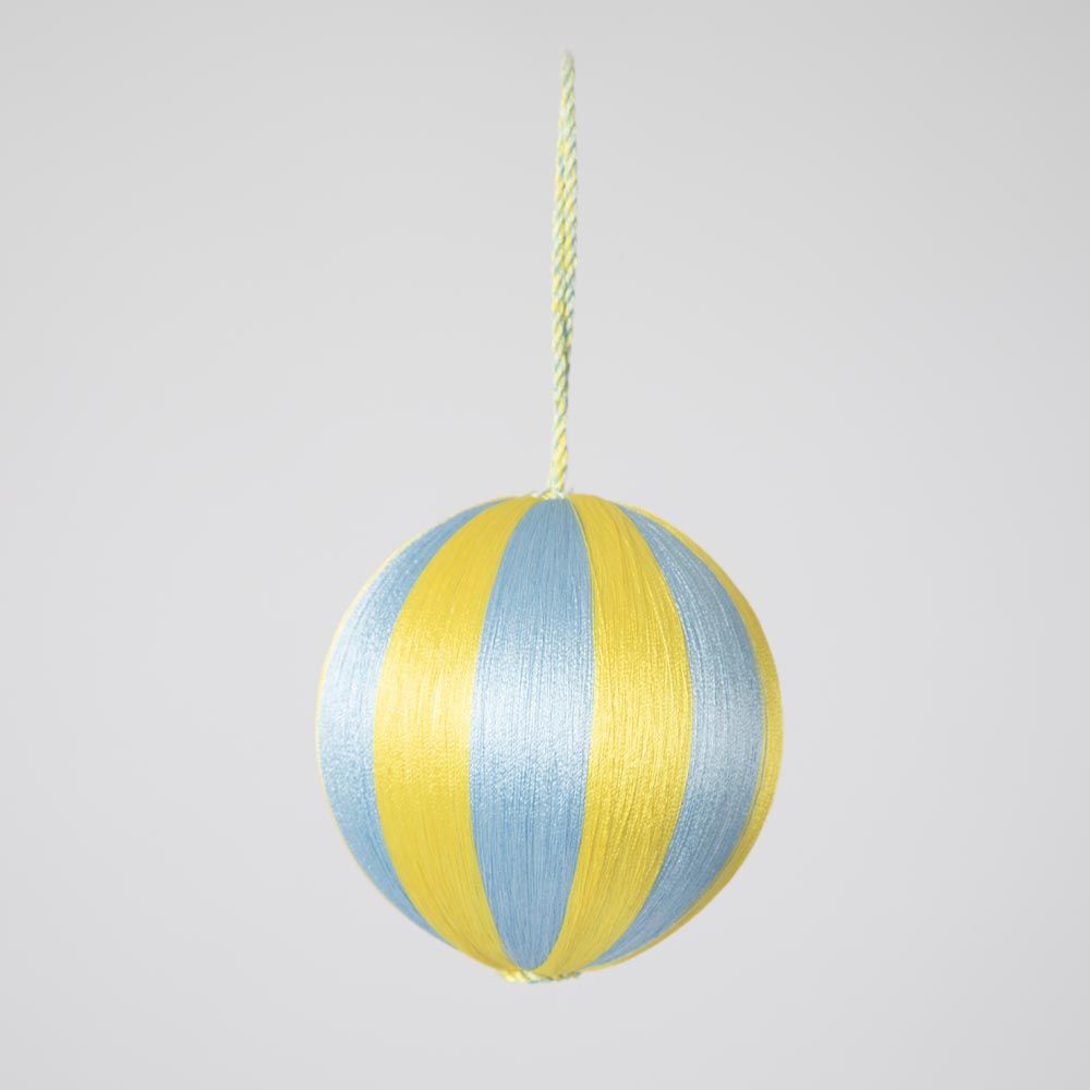 Silk Stripe Bauble Medium Blue & Yellow