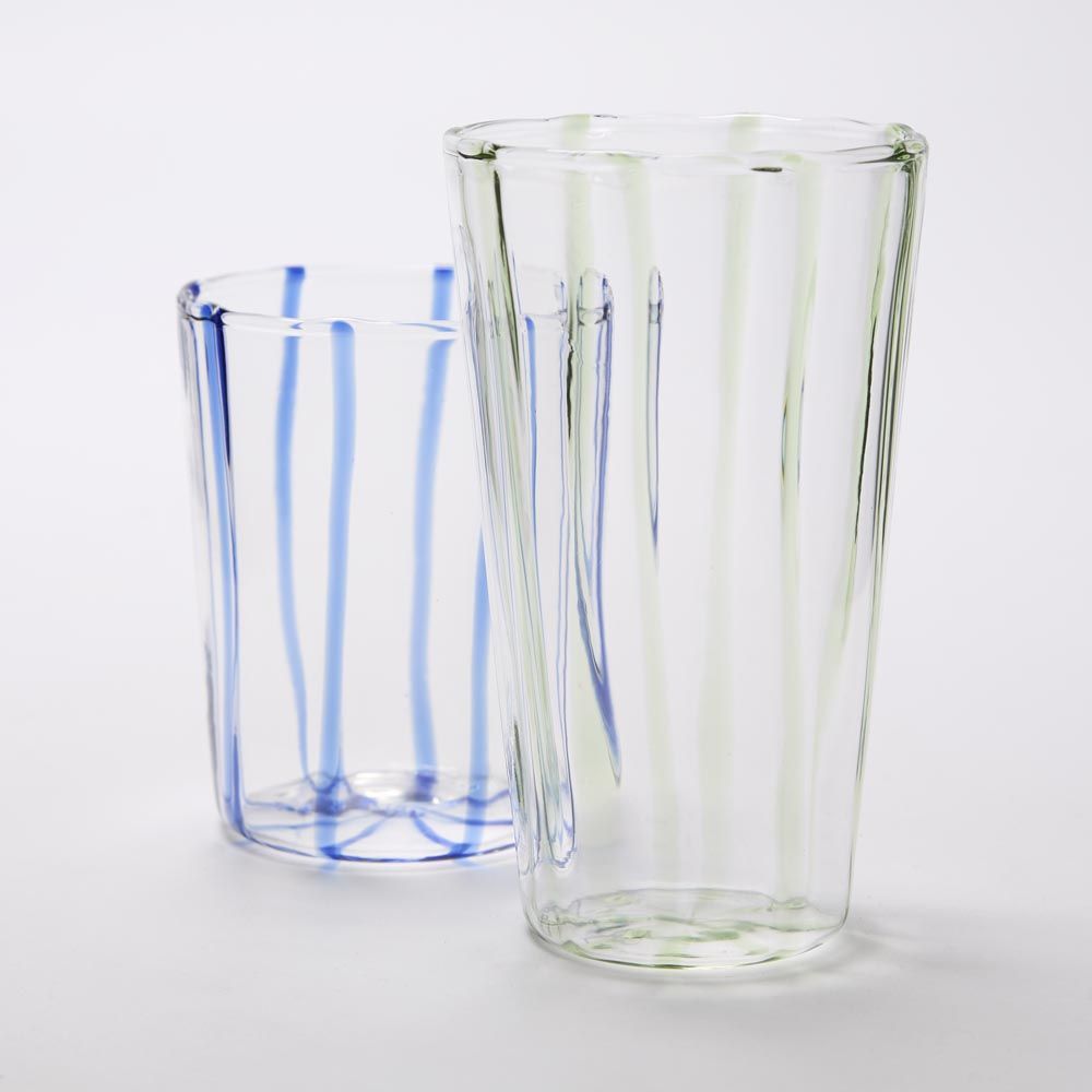 La Dolce Vita Pinstripe Glass Tumbler Blue