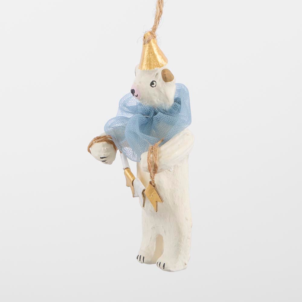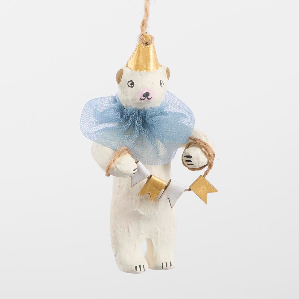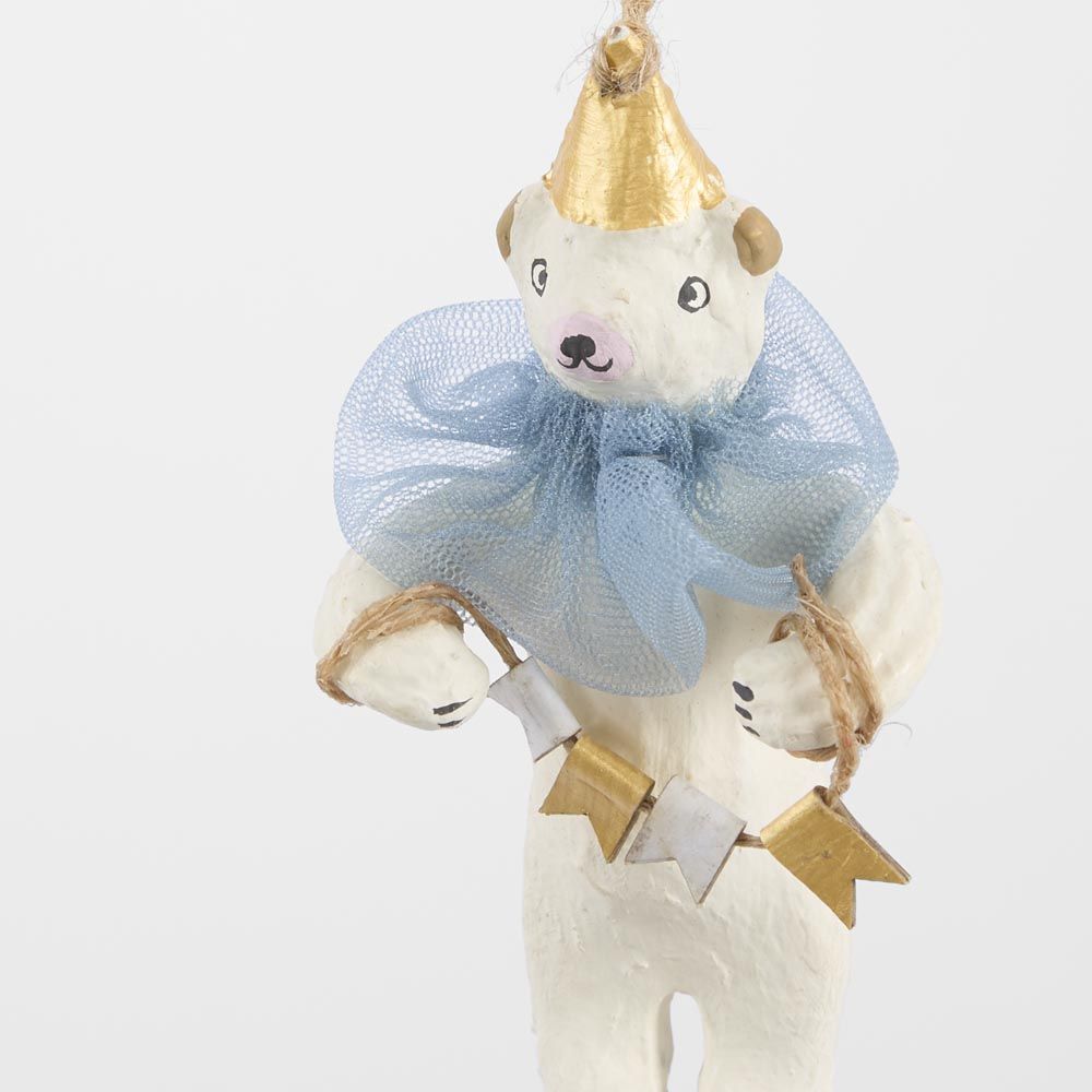 Mache Carnivale Bear Tree Decoration Blue