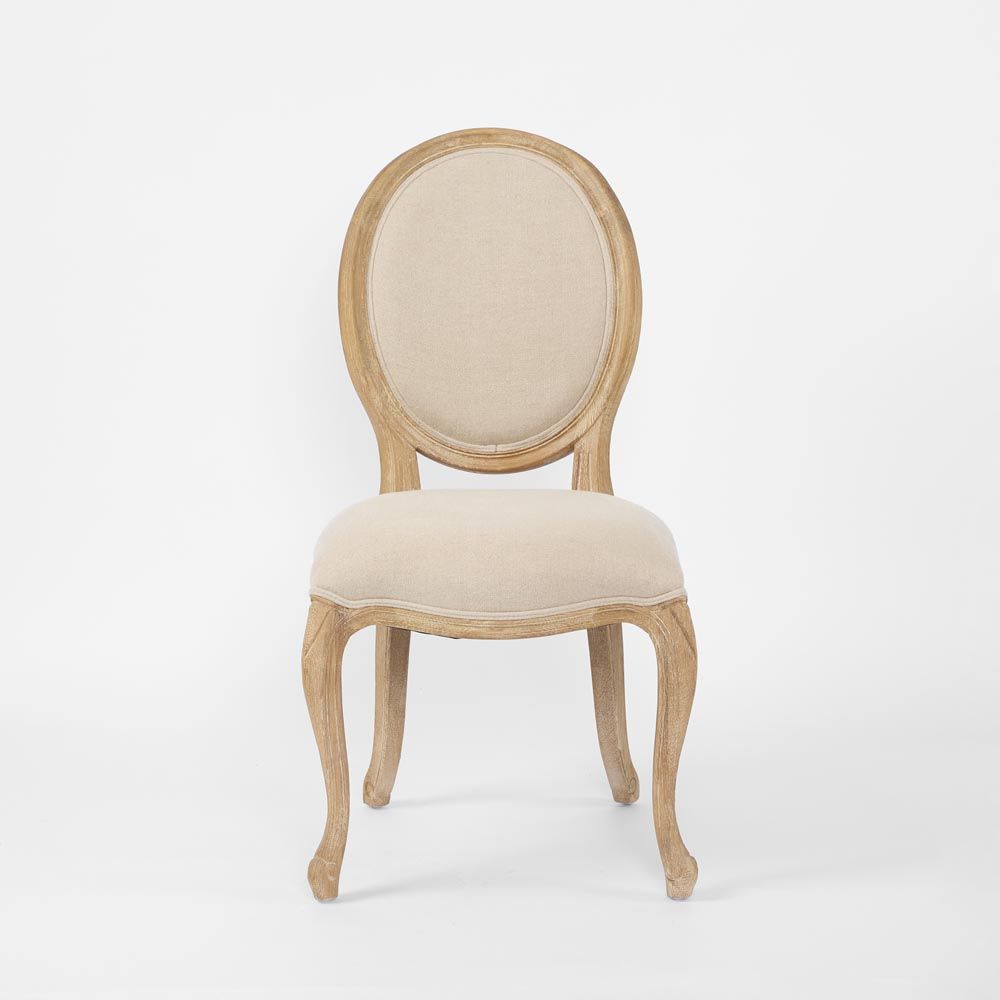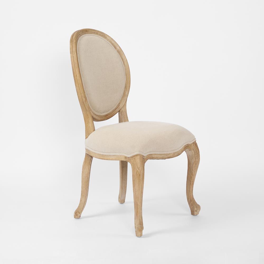 Every Louis Chair Seems To Evoke That Sense Of Nostalgic Intrigue. The Sheild Back Side Chair Upholsterd In 100% Ecru Linen Compliments The Natural Tones Of The Beautiful Oak Frame. Wheteher You Choose To Use This Chair As A Dining Chair Or Accent Piece It Will Always Be A Symbol Of Elegance.
