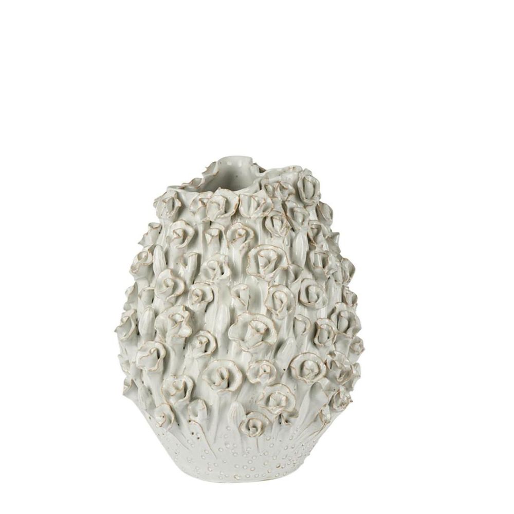 Enhance your living space with our Majordle Vase, featuring a wide base and an uneven scalloped rim, this masterpiece has charming rosette mushroom-like structures on the surface. Whether gracing your indoor haven, airy porch, or stylish balcony, this contemporary piece will become a hit wherever it resides. Ideal for displaying vibrant floral arrangements, this versatile ceramic creation harmoniously blends form and function, making it a must-have for those who appreciate sophistication in every corner of their home. watertight/waterproof
