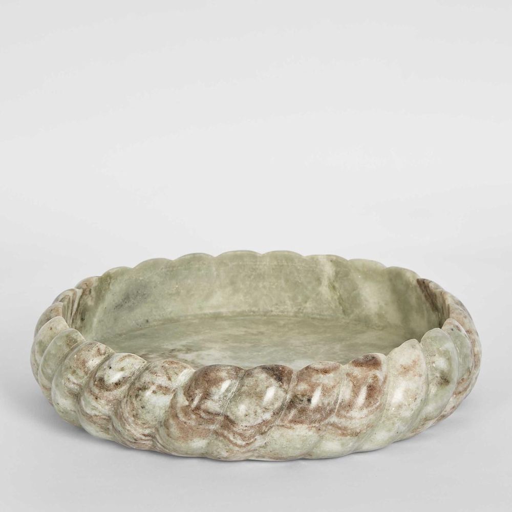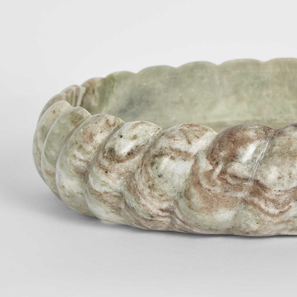 Elevate your home decor with our large Twist Marble Bowl in Beige and White, a masterpiece hand-carved from exquisite Indian marble. Each piece is a unique work of art, thanks to the natural variations in the marble, ensuring your table setting is as bespoke as you are. Perfect for keeping your cherished jewelry, keeping track of keys, or showcasing it as a statement decor piece in your foyer. As this is a natural material, each piece will have its own unique characteristics, making every item one of a kind.