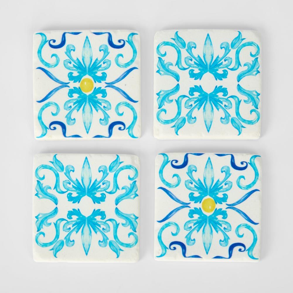 La Dolce Vita Pattern Coasters Blue - Set of 4