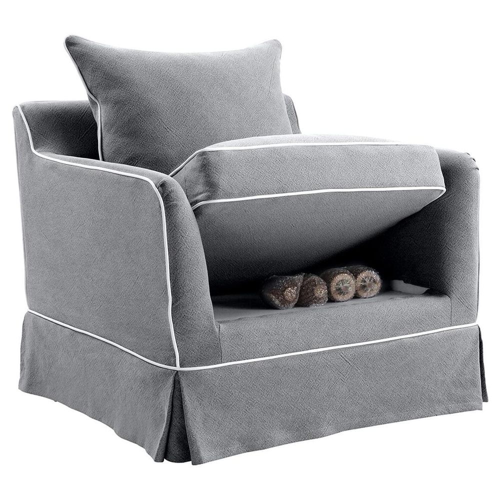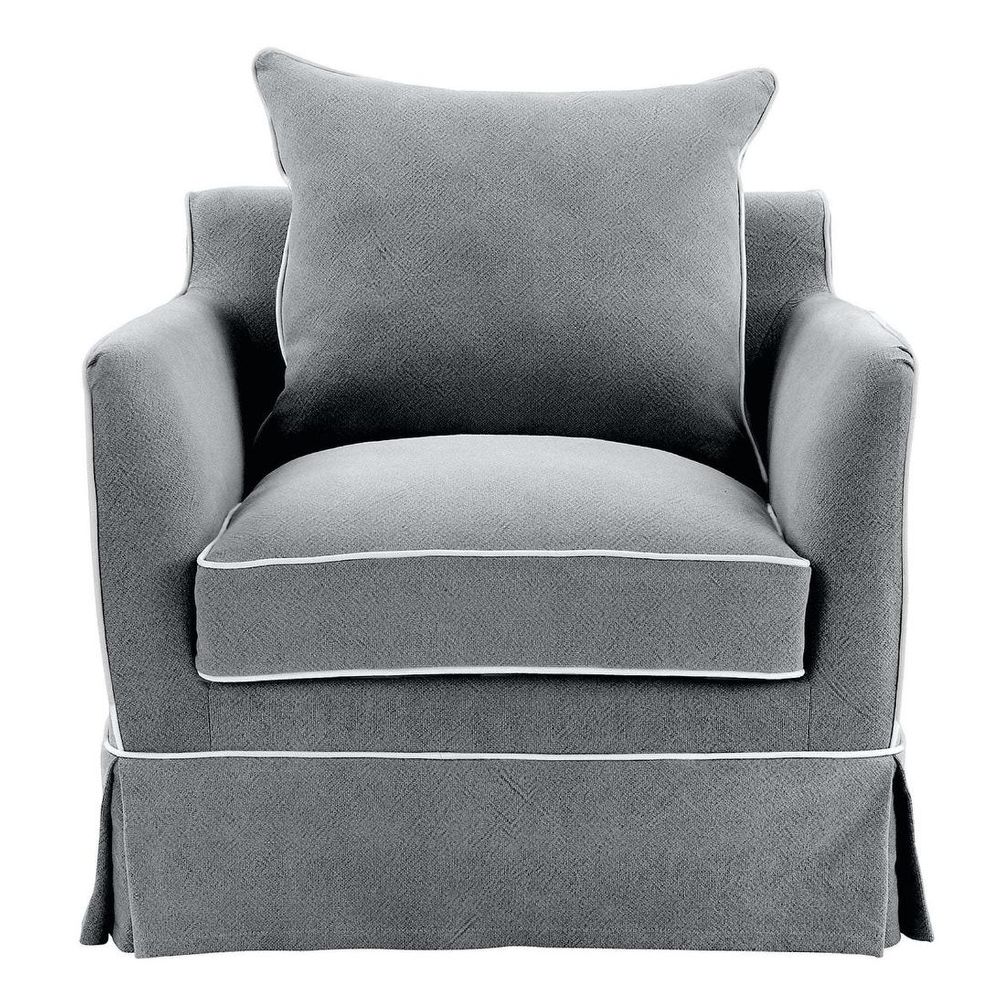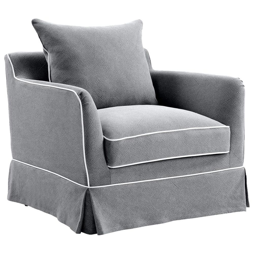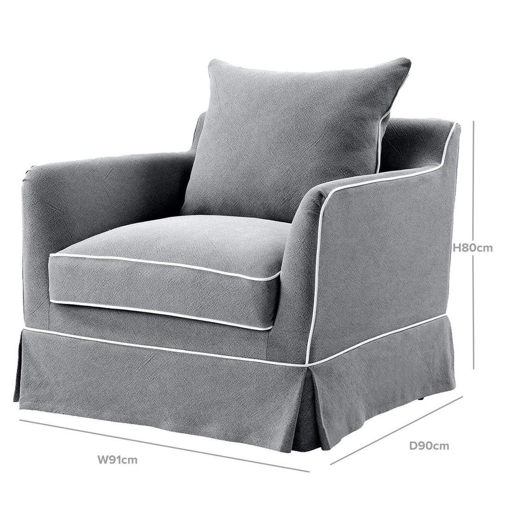 Noosa Hamptons Armchair Grey W/White Piping