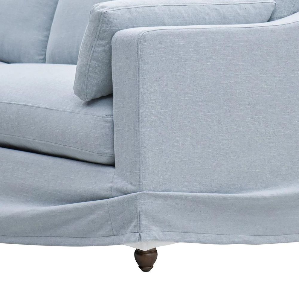 Available in 5 classic Hampton’s Fabric covers. Features: Expertly tailored Slip-cover imbuing a relaxed yet elegant form. Feather & Fibre-filled back and arm cushions for luxurious comfort & support. Premium high-resilience foam seating with feather overlay for luxurious & enduring comfort. Sinuous steel springs tethered with high performance latex webbing provide edge to edge seat support. Reinforced solid timber frame engineered to last and backed by our 10yr frame guarantee. Solid hardwood legs - require simple attachment by hand-screwing to base upon delivery. Slip covers and bases are packed separately. Slip covers need to be applied to bases and cushions to complete assembly for use.