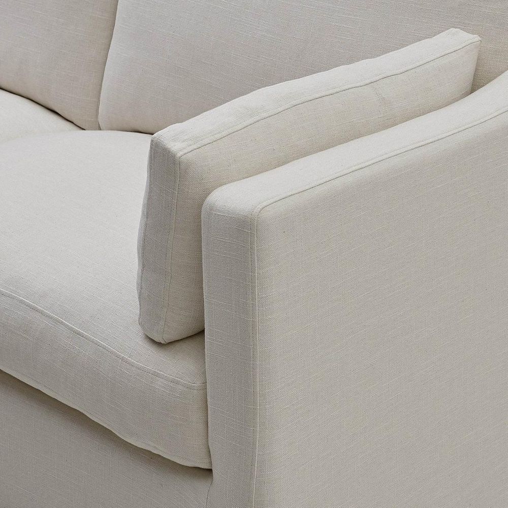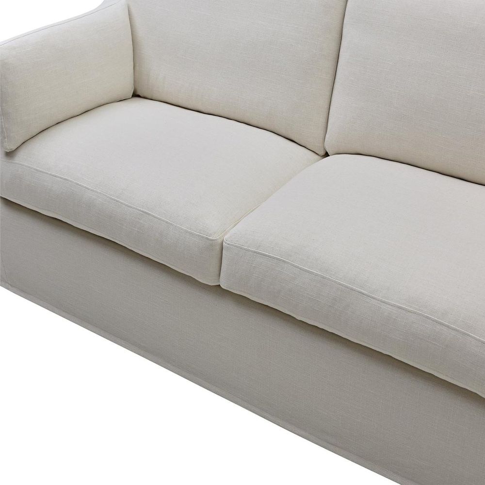 Available in 5 classic Hampton’s Fabric covers. Features: Expertly tailored Slip-cover imbuing a relaxed yet elegant form. Feather & Fibre-filled back and arm cushions for luxurious comfort & support. Premium high-resilience foam seating with feather overlay for luxurious & enduring comfort. Sinuous steel springs tethered with high performance latex webbing provide edge to edge seat support. Reinforced solid timber frame engineered to last and backed by our 10yr frame guarantee. Solid hardwood legs - require simple attachment by hand-screwing to base upon delivery. Slip covers and bases are packed separately. Slip covers need to be applied to bases and cushions to complete assembly for use.