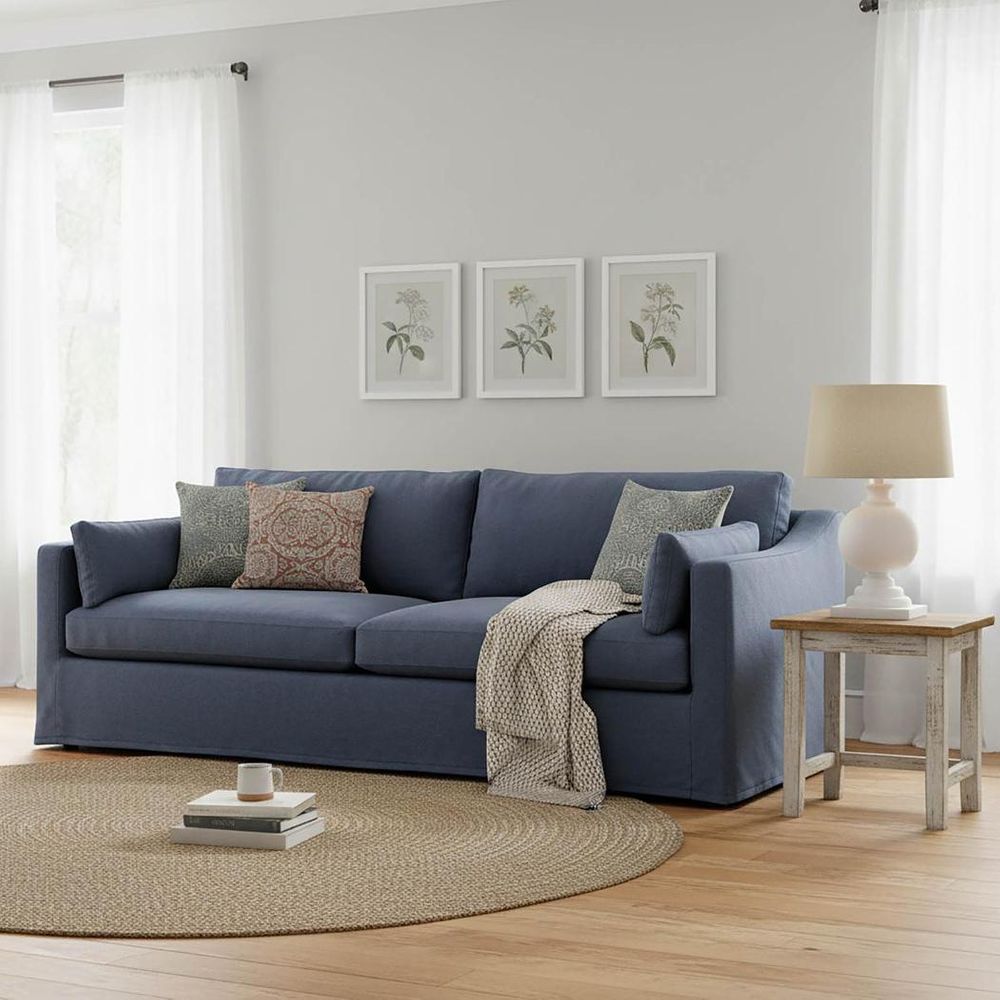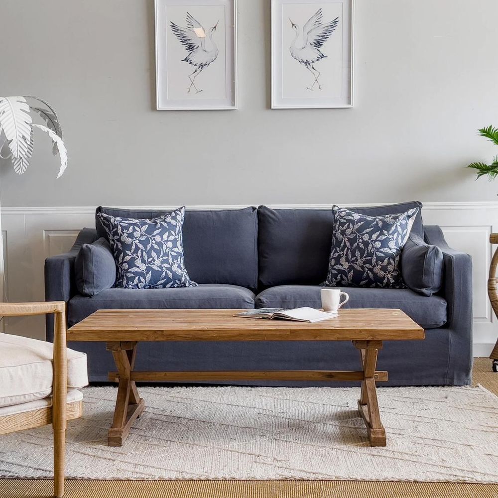 Available in 5 classic Hampton’s Fabric covers. Features: Expertly tailored Slip-cover imbuing a relaxed yet elegant form. Feather & Fibre-filled back and arm cushions for luxurious comfort & support. Premium high-resilience foam seating with feather overlay for luxurious & enduring comfort. Sinuous steel springs tethered with high performance latex webbing provide edge to edge seat support. Reinforced solid timber frame engineered to last and backed by our 10yr frame guarantee. Solid hardwood legs - require simple attachment by hand-screwing to base upon delivery. Slip covers and bases are packed separately. Slip covers need to be applied to bases and cushions to complete assembly for use.