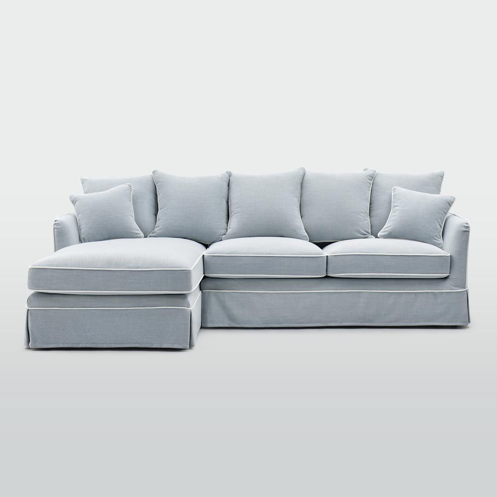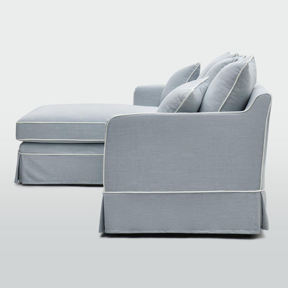 Available in up to 7 classic Hampton’s Fabric covers. Features: Expertly tailored Slip-cover with elegant piping detail embodies the Noosa’s inviting and relaxed form. Fibre-filled loose cushions for extra comfort. Premium high-resilience foam seating with fibre overlay for enduring comfort and support. Sinuous steel springs tethered with high performance latex webbing provide edge to edge seat support. Reinforced solid timber frame engineered to last and backed by our 10yr frame guarantee. Solid hardwood legs - require simple attachment by hand-screwing to base upon delivery. Slip covers and bases are packed separately. Slip covers need to be applied to bases and cushions to complete assembly for use. Chaise Depth: 166
