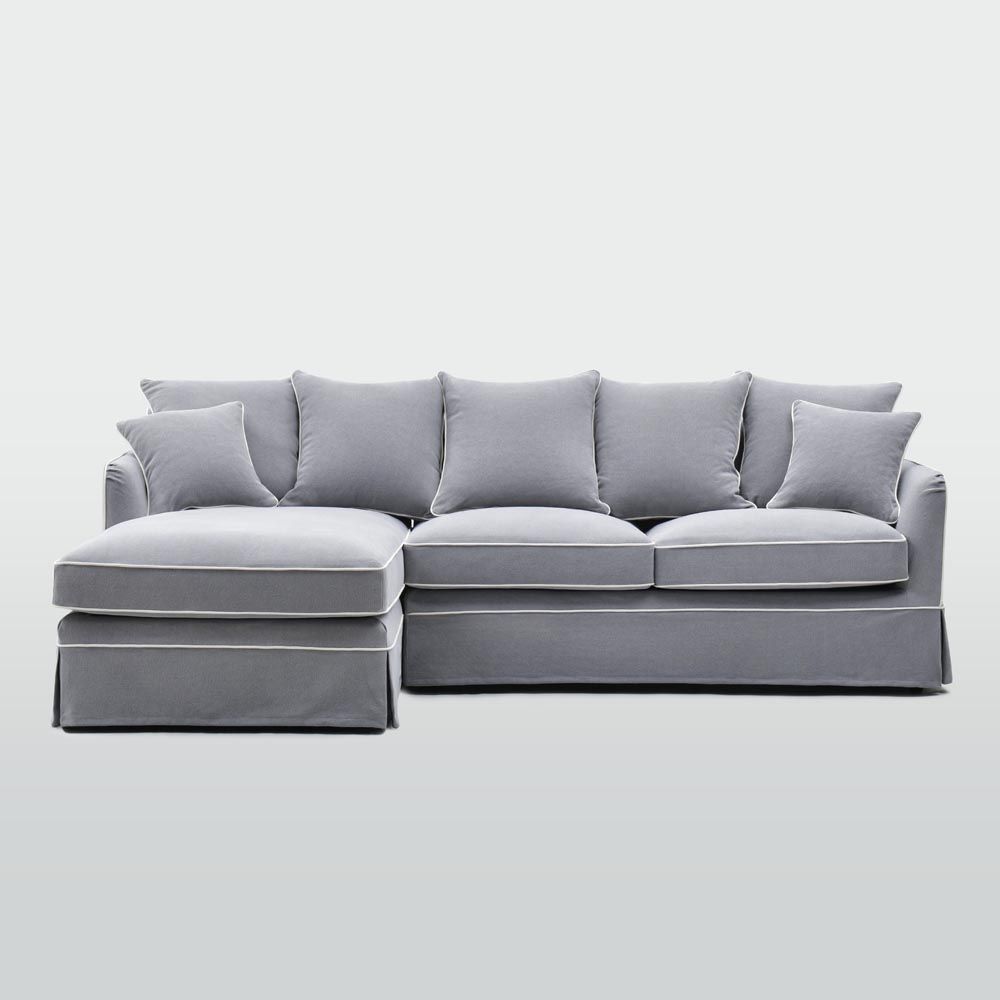 Available in up to 7 classic Hampton’s Fabric covers. Features: Expertly tailored Slip-cover with elegant piping detail embodies the Noosa’s inviting and relaxed form. Fibre-filled loose cushions for extra comfort. Premium high-resilience foam seating with fibre overlay for enduring comfort and support. Sinuous steel springs tethered with high performance latex webbing provide edge to edge seat support. Reinforced solid timber frame engineered to last and backed by our 10yr frame guarantee. Solid hardwood legs - require simple attachment by hand-screwing to base upon delivery. Slip covers and bases are packed separately. Slip covers need to be applied to bases and cushions to complete assembly for use. Chaise Depth: 166