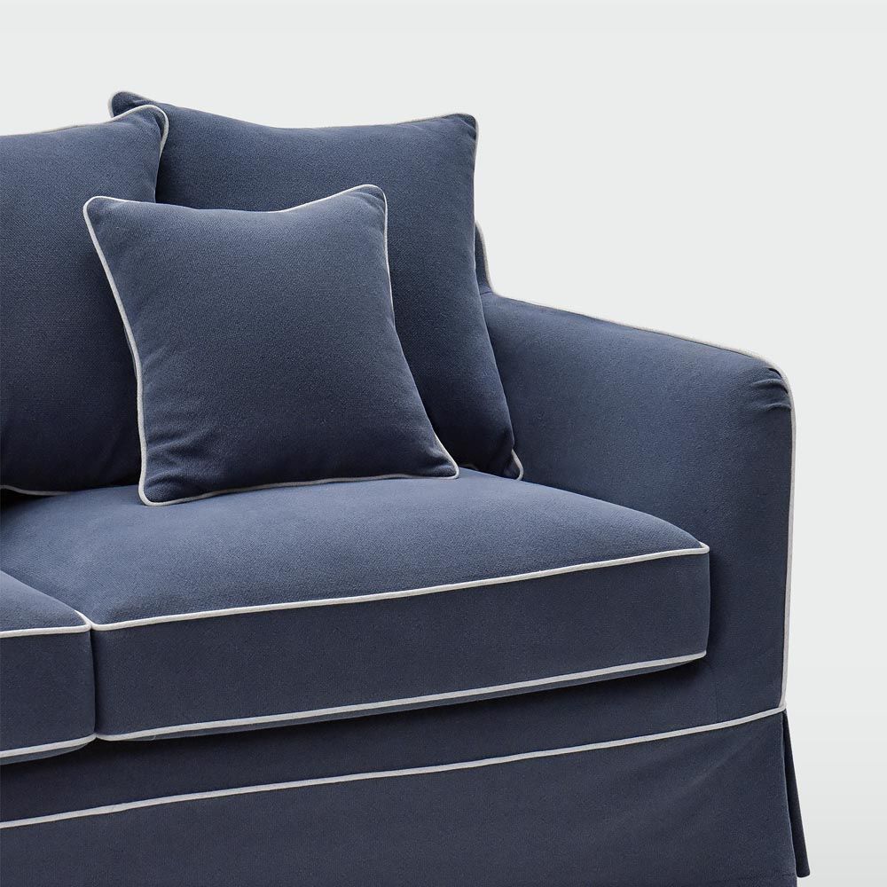 Available in up to 7 classic Hampton’s Fabric covers. Features: Expertly tailored Slip-cover with elegant piping detail embodies the Noosa’s inviting and relaxed form. Fibre-filled loose cushions for extra comfort. Premium high-resilience foam seating with fibre overlay for enduring comfort and support. Sinuous steel springs tethered with high performance latex webbing provide edge to edge seat support. Reinforced solid timber frame engineered to last and backed by our 10yr frame guarantee. Solid hardwood legs - require simple attachment by hand-screwing to base upon delivery. Slip covers and bases are packed separately. Slip covers need to be applied to bases and cushions to complete assembly for use. Chaise Depth: 166