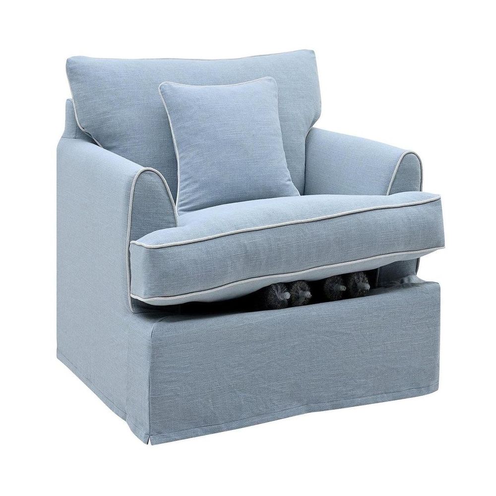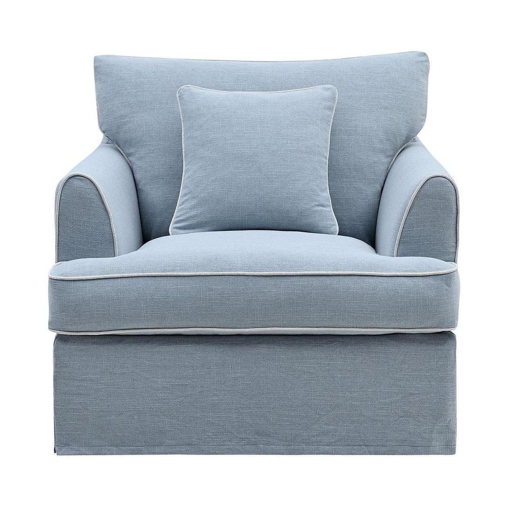 Available in up to 7 classic Hampton’s Fabric covers. Features: Expertly tailored Slip-cover with elegant piping detail & comfortable tapered arms offers the ultimate in classic style and comfort. Fibre-filled loose cushions for extra comfort. Premium high-resilience foam seating with fibre overlay for enduring comfort and support. Sinuous steel springs tethered with high performance latex webbing provide edge to edge seat support. Reinforced solid timber frame engineered to last and backed by our 10yr frame guarantee. Solid hardwood legs - require simple attachment by hand-screwing to base upon delivery. Slip covers and bases are packed separately. Slip covers need to be applied to bases and cushions to complete assembly for use.