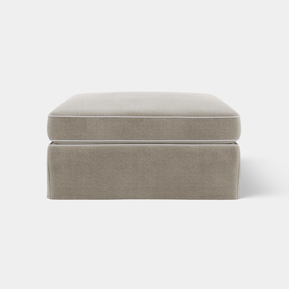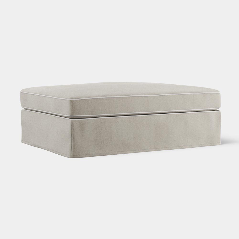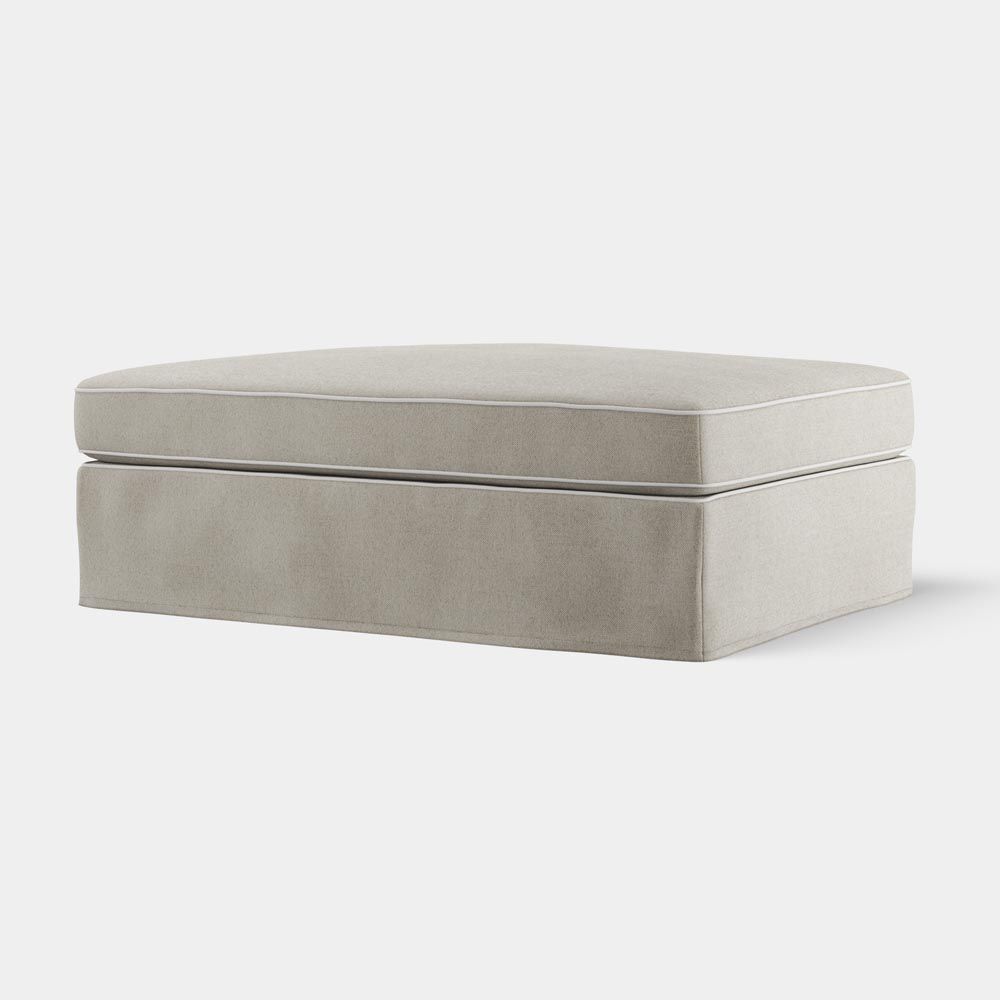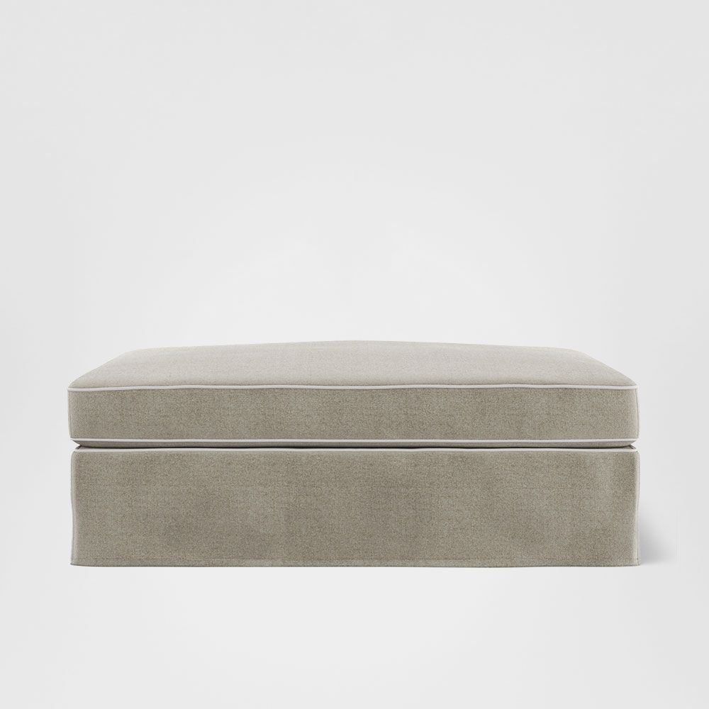 Dimensions : W125 D91 H45cm Weight : 22Kg Colour : Ivory Fabric material : 18% polyester, 10% linen, 15% cotton, 57% viscose Other material : Pine, Foam, timber legs, cotton and nonwoven fabric for inner cover