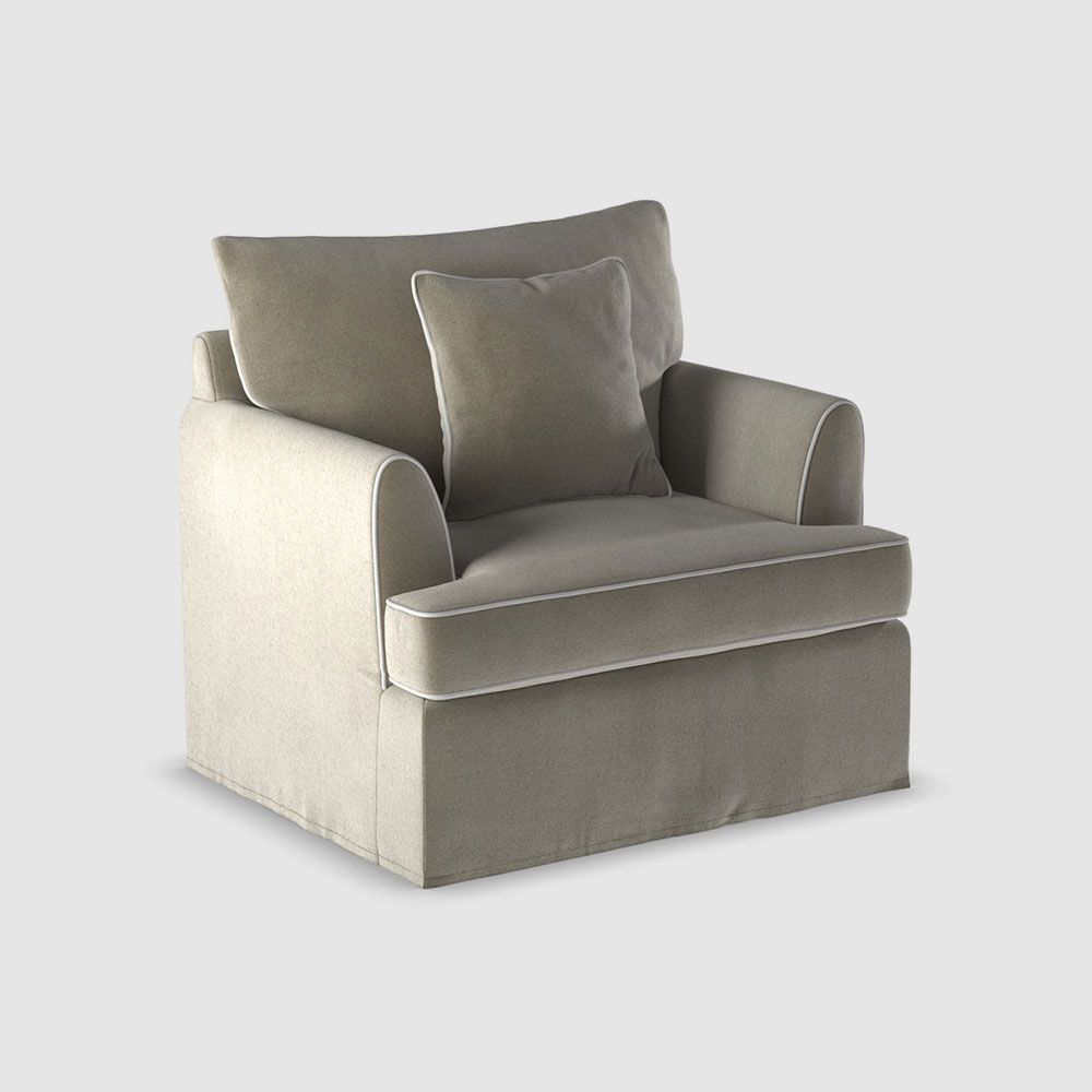 Available in up to 7 classic Hampton’s Fabric covers. Features: Expertly tailored Slip-cover with elegant piping detail & comfortable tapered arms offers the ultimate in classic style and comfort. Fibre-filled loose cushions for extra comfort. Premium high-resilience foam seating with fibre overlay for enduring comfort and support. Sinuous steel springs tethered with high performance latex webbing provide edge to edge seat support. Reinforced solid timber frame engineered to last and backed by our 10yr frame guarantee. Solid hardwood legs - require simple attachment by hand-screwing to base upon delivery. Slip covers and bases are packed separately. Slip covers need to be applied to bases and cushions to complete assembly for use.