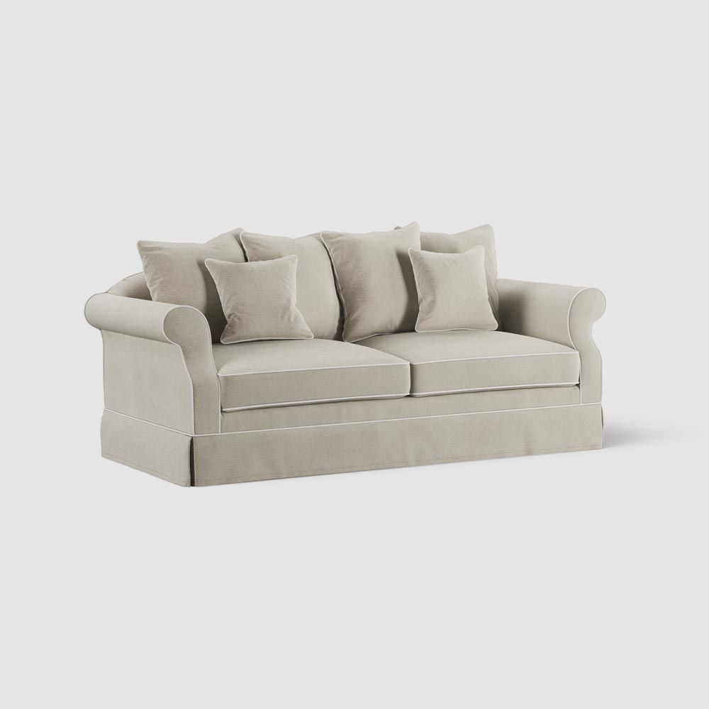 Available in up to 7 classic Hampton’s Fabric covers. Features: Expertly tailored Slip-cover with elegant piping detail & comfortable rolled arms offers the ultimate in classic style and comfort. Fibre-filled loose cushions for extra comfort. Premium high-resilience foam seating with fibre overlay for enduring comfort and support. Sinuous steel springs tethered with high performance latex webbing provide edge to edge seat support. Reinforced solid timber frame engineered to last and backed by our 10yr frame guarantee. Solid hardwood legs - require simple attachment by hand-screwing to base upon delivery. Slip covers and bases are packed separately. Slip covers need to be applied to bases and cushions to complete assembly for use.