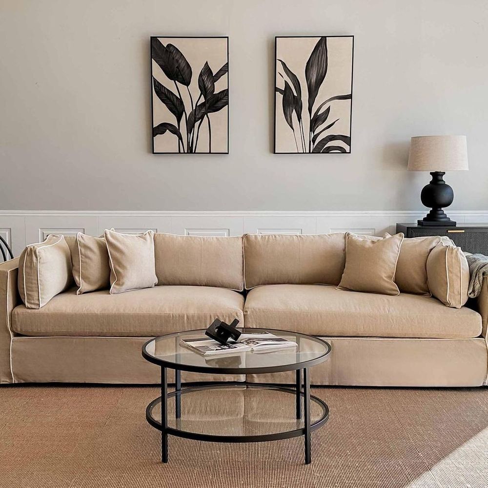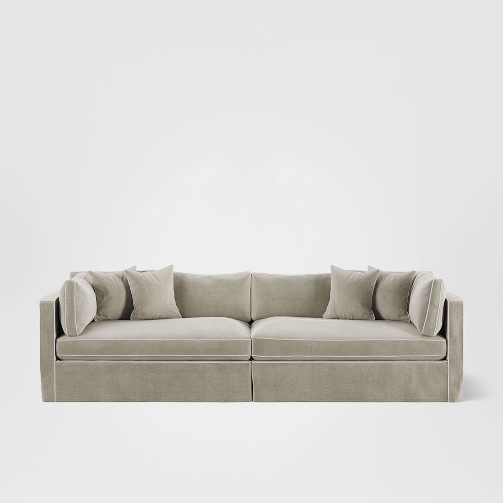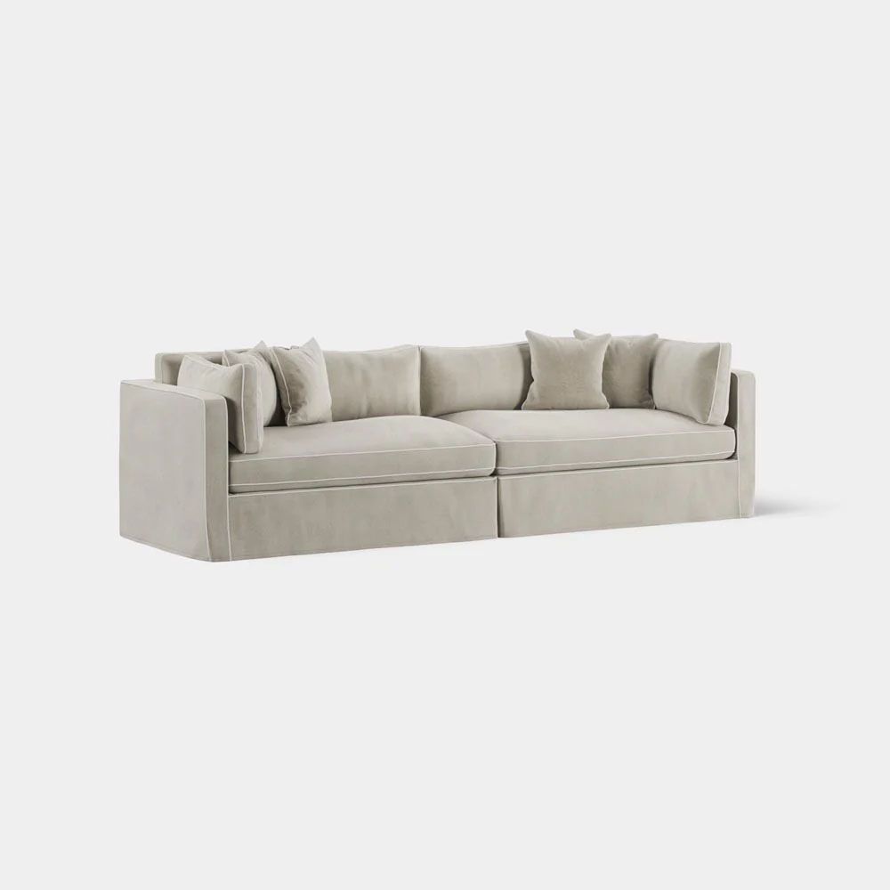 Available in 5 classic Hampton’s Fabric covers. Features: Expertly tailored Slip-cover with elegant piping detail defining the bold form. Feather & Fibre-filled loose back and side cushions for luxurious sink-in comfort. Premium high-resilience foam seating with feather overlay for that sink-in luxurious comfort. Sinuous steel springs tethered with high performance latex webbing provide edge to edge seat support. Reinforced solid timber frame engineered to last and backed by our 10yr frame guarantee. Solid hardwood legs - require simple attachment by hand-screwing to base upon delivery. Slip covers and bases are packed separately. Slip covers need to be applied to bases and cushions to complete assembly for use.