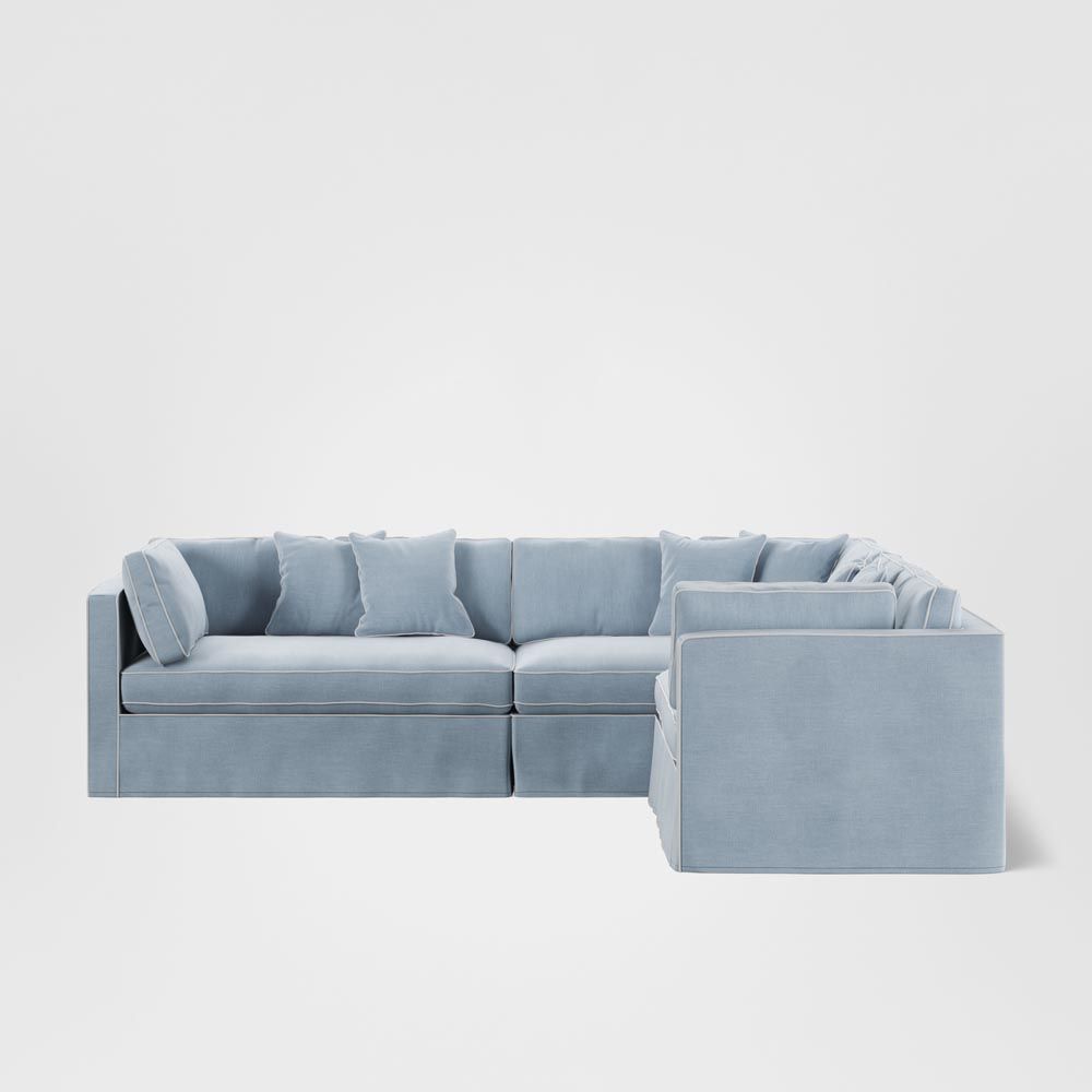 Marbella Modular 4 Seater Sofa Reversible Ottoman Chaisea Beach W/White Piping