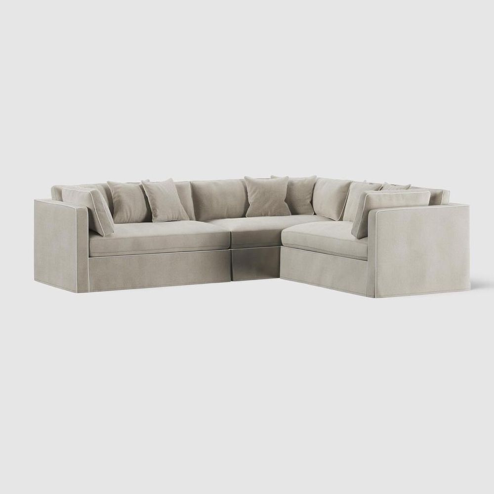 Marbella Modular Sofa Natural with White Piping - Right Facing