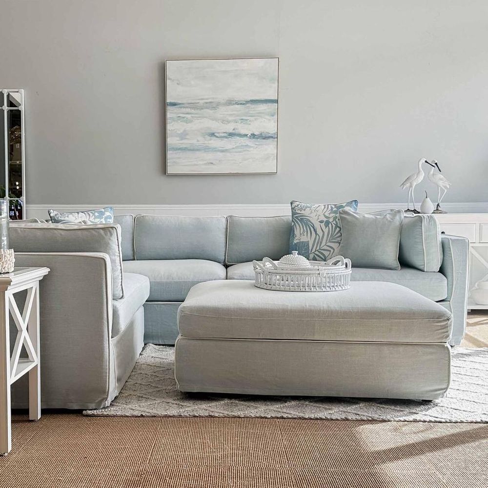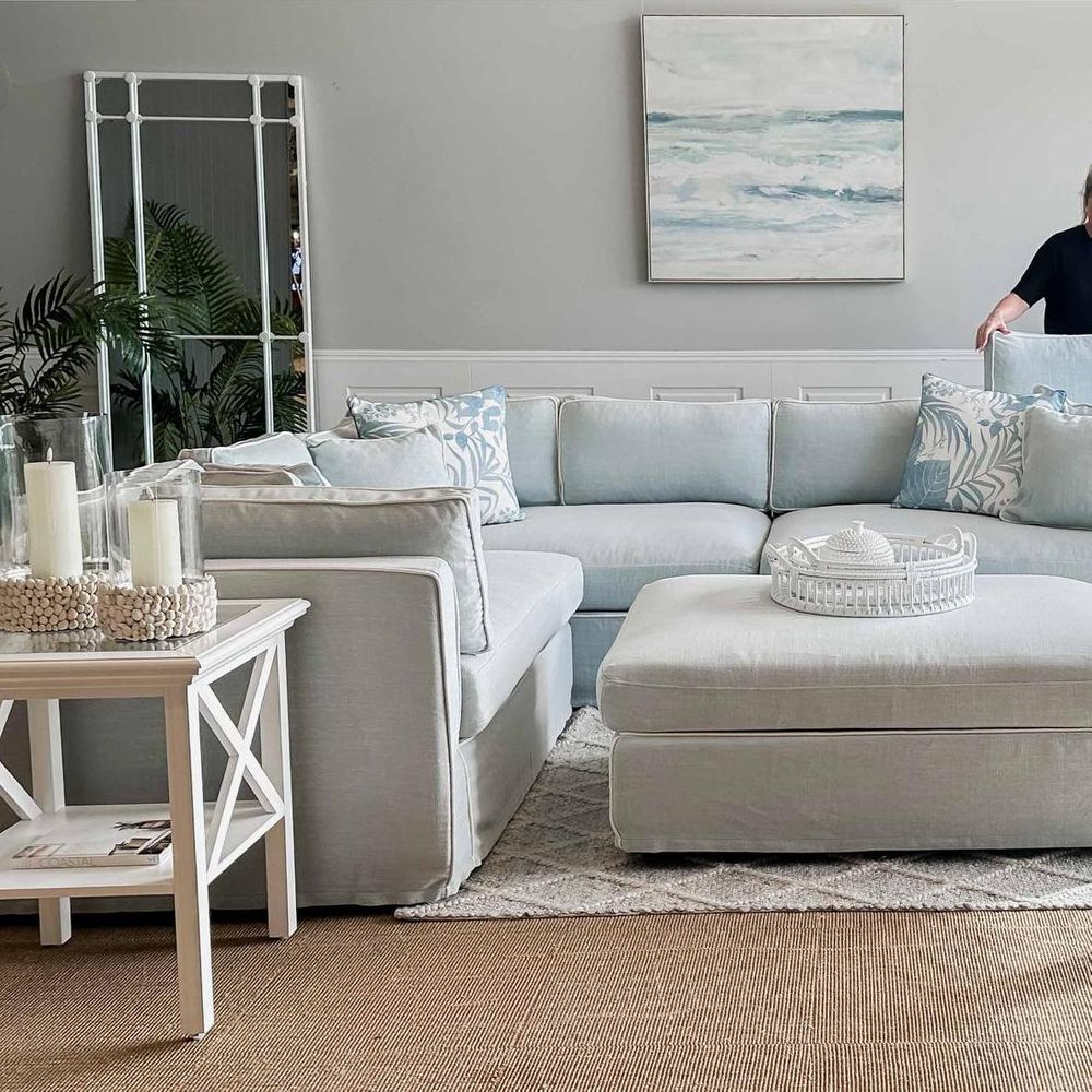 Available in 5 classic Hampton’s Fabric covers. Features: Expertly tailored Slip-cover with elegant piping detail defining the bold form. Feather & Fibre-filled loose back and side cushions for luxurious sink-in comfort. Premium high-resilience foam seating with feather overlay for that sink-in luxurious comfort. Sinuous steel springs tethered with high performance latex webbing provide edge to edge seat support. Reinforced solid timber frame engineered to last and backed by our 10yr frame guarantee. Solid hardwood legs - require simple attachment by hand-screwing to base upon delivery. Slip covers and bases are packed separately. Slip covers need to be applied to bases and cushions to complete assembly for use.