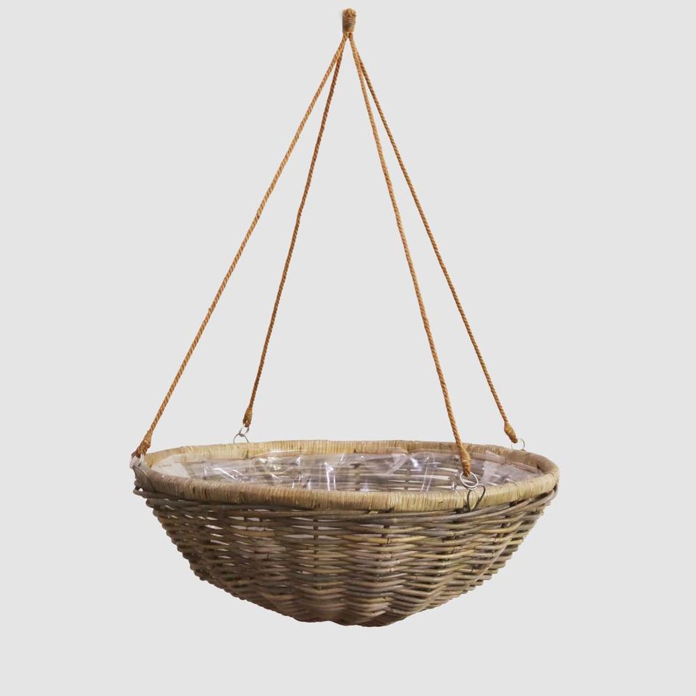 Large Rattan Hanging basket is a fabulous way to display your greenery. This hanging rattan basket is designed with a plastic inner lining to plant into. Greenery such as ferns would look amazing in this hanging woven basket. The round rattan basket is fitted with a tripple chain hanger and hook to make for very easy installation. This large hanging basket make for a standout hanging installation in a conservatory or patio area. Filled with greenery they can change the look of any outdoor patio space. INTERIOR USE OR UNDERCOVER PATIO USE WITH SOME DETIORATION IN A HEAVY RAIN DOWN POUR. Please note: Rattan is not designed for full outdoor use. If placed outdoors or even in covered outdoor areas, it may weather, fade, or change over time due to exposure to sunlight and moisture. We recommend indoor use or placing it in well-protected areas.
