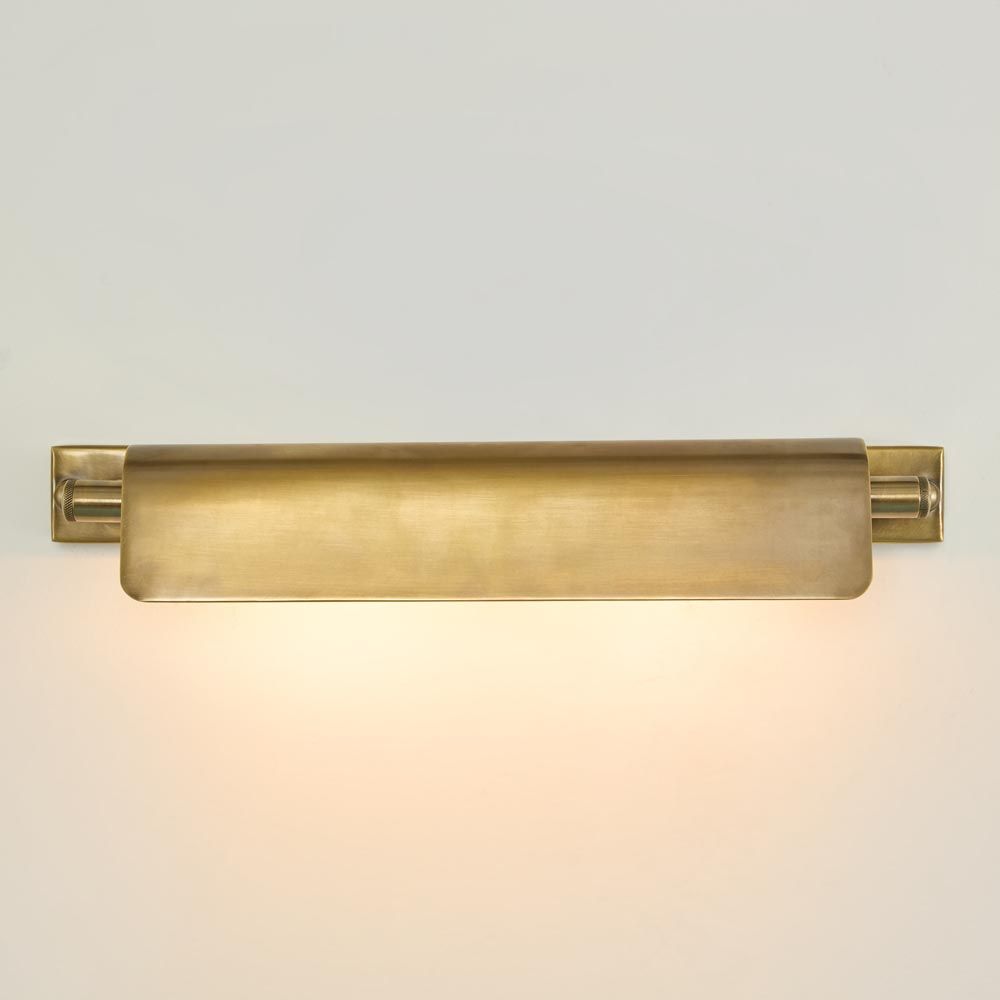 The Bradman Picture Light in antique brass embodies aerodynamic minimalism with its sleek, wing-inspired design. Featuring a slim profile and clean linear form, this refined fixture is engineered to distribute an even, glare-free glow—perfect for highlighting artwork, photographs, or decorative wall features with understated elegance.