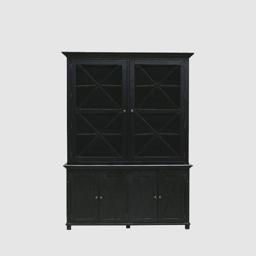 Sorrento Large Glass Door Hamptons Cabinet Black