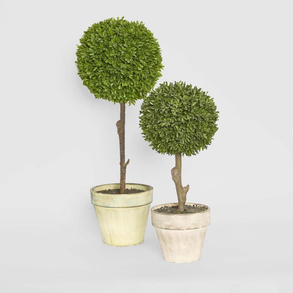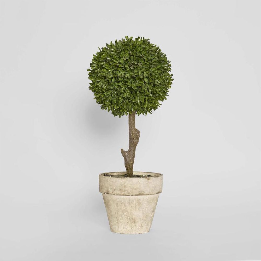 Infuse your space with timeless charm using our faux Boxwood Topiary, a majestic creation boasting a towering brown stem crowned with a lush sphere of vibrant green leaves, sculpted into an alluring spherical form. With cutting-edge technology ensuring unrivaled realism, our Boxwood Topiary promises lasting allure without the inconvenience of wilting or fragrant farewells. Cost-effective and hypoallergenic, it stands as a beacon of refined taste and practical elegance, inviting you to indulge in the timeless beauty of verdant greenery without compromise. Presented in a neutral beige pot, this topiary exudes sophistication, making it the quintessential addition to tall pots or planter boxes in your home, garden, or office space.