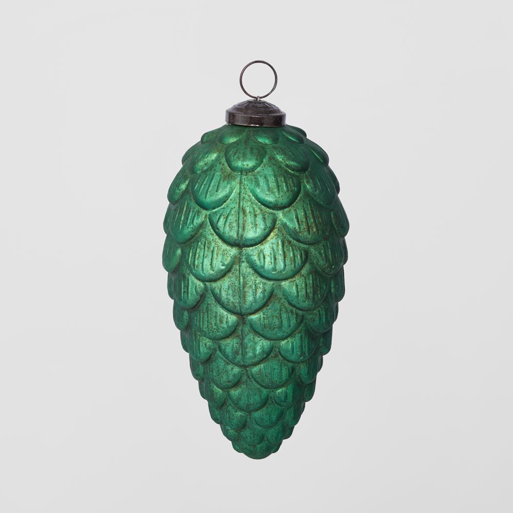 Antiqued Glass Pinecone Decoration Green Large