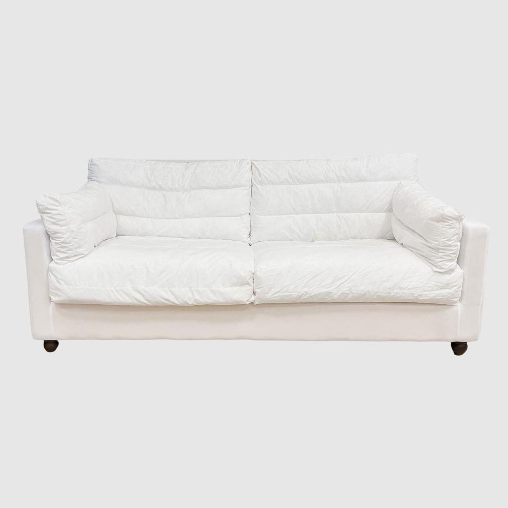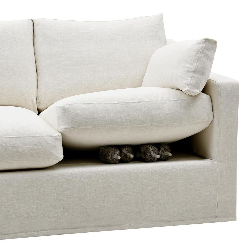 Create an inviting atmosphere for relaxation and entertainment alike with our Clovelly 2 Seat Naked Sofa Base and Cushion Inserts. Crafted with versatility in mind, this base invites you to personalize your space by mixing and matching fabrics from our Clovelly Slip Cover collection. With its airy aesthetics, this sofa promises a luxurious lounging experience, making it the perfect centerpiece for your home.